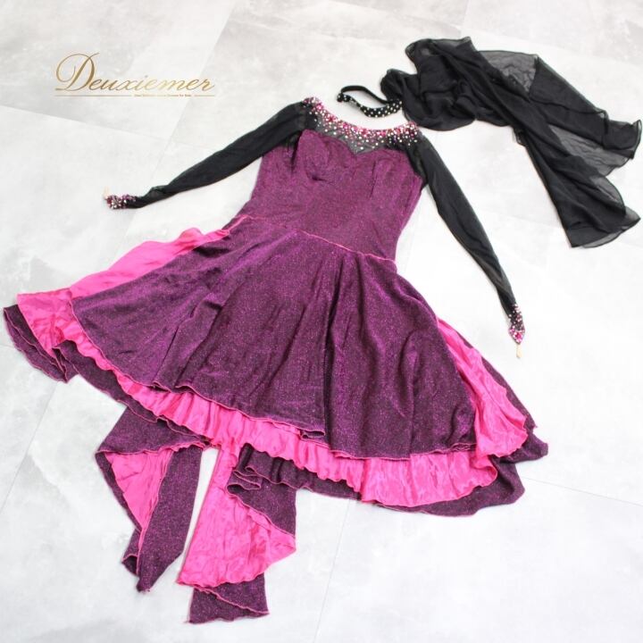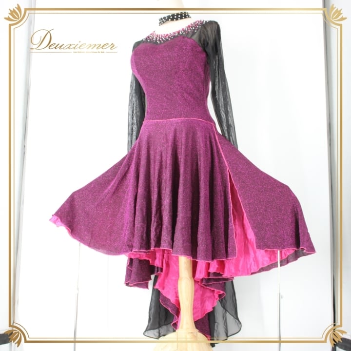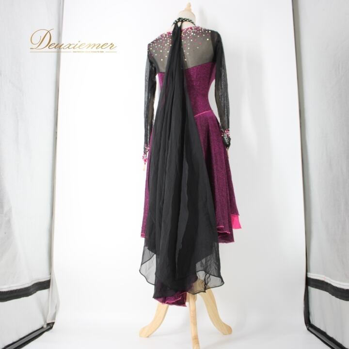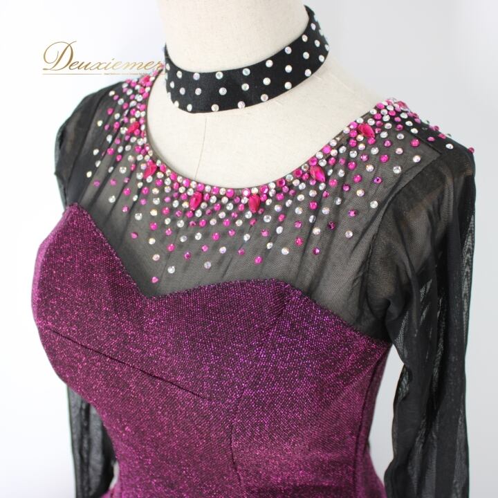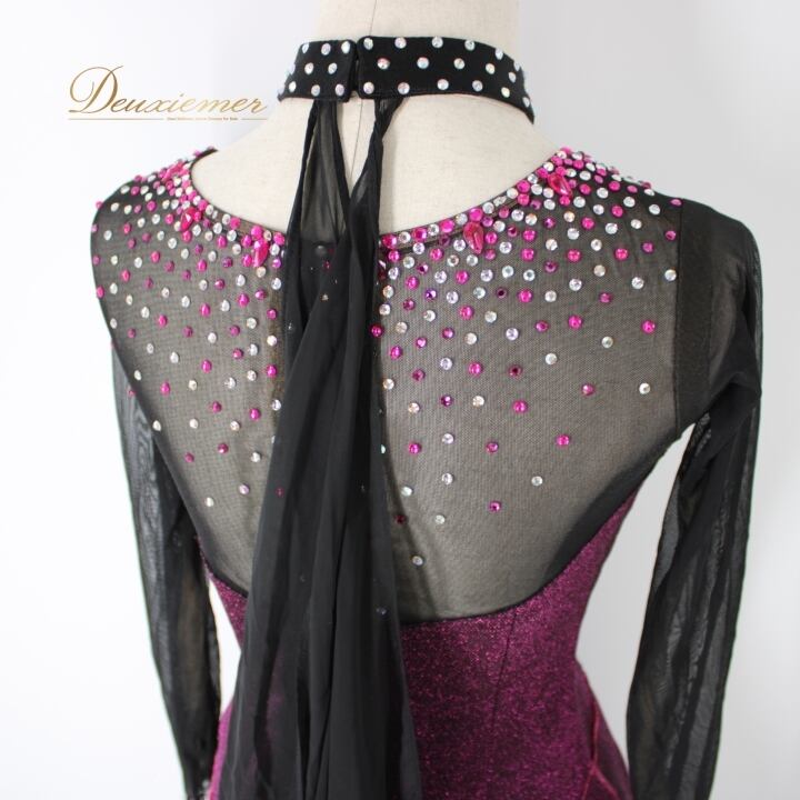 #社交ダンス #ダンス衣装 #ドレス #ブラックピンク #ラインストーン #チョーカー #レオタード #伸縮性 #ファスナー仕様 #ダンスパフォーマンス #パーティードレス #トルソー #ダンススタイル #衣装コーデ #ダンスファッション #ウエスト #肩幅 #おしゃれ #ダンスイベント #ENUTSU