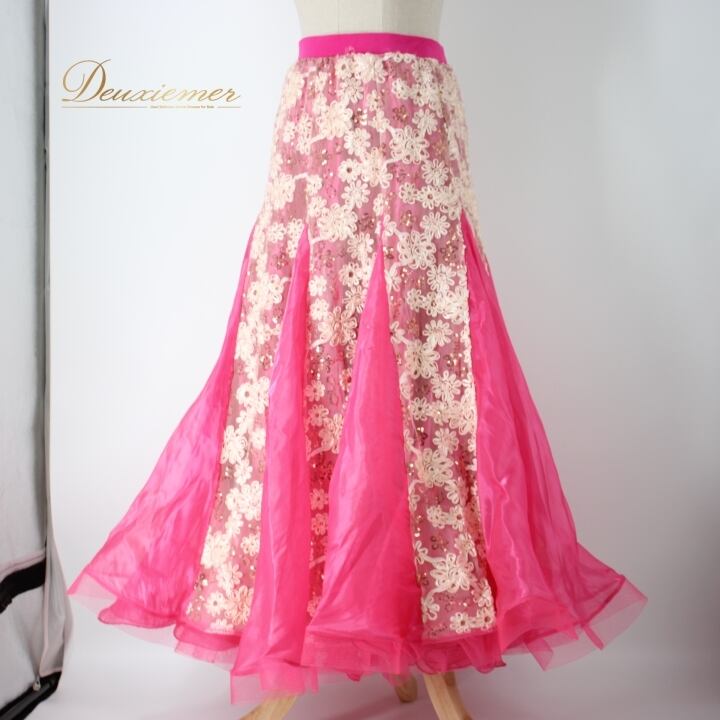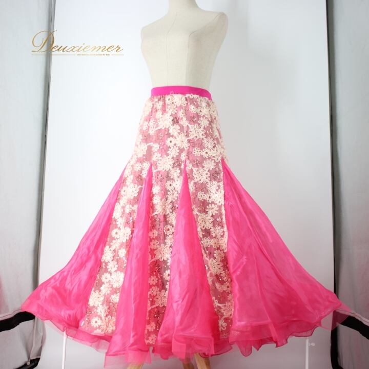 社交ダンス 衣装 スタンダード スカート レッスンウェア レディース ピンク系 Kanae Dance ホワイト系 レース スパンコール 花柄 派手 フレア スカート おしゃれ 男女兼用 ダンスレッスン ホースヘア 伸縮性 リーダスカート 大人用 可愛い ボリューム感 華やか ダンスアウトフィット 春夏用 コスチューム 特徴的 派手なデザイン お手入れ簡単