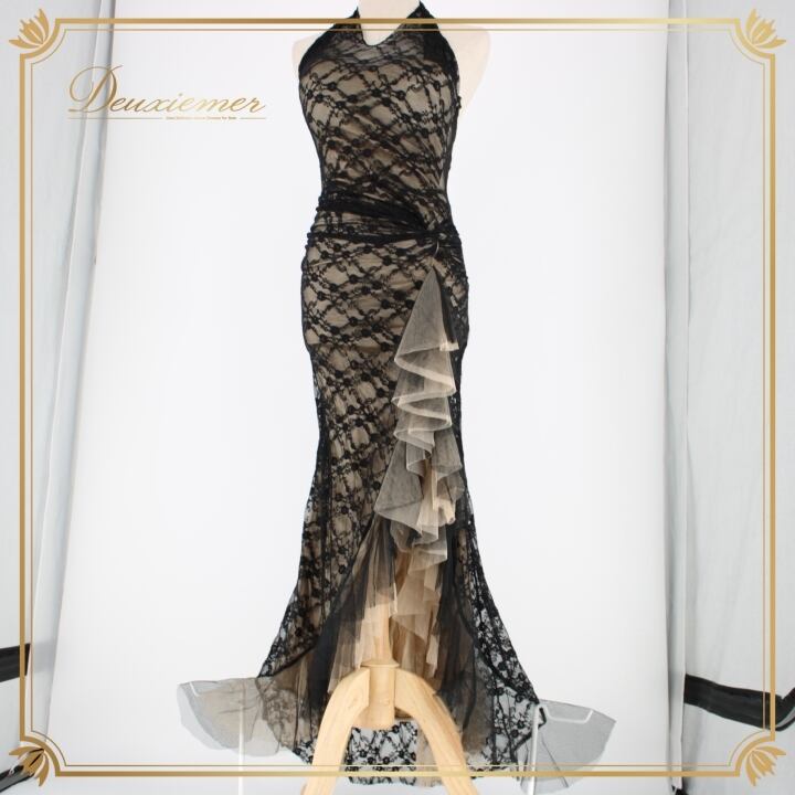 社交ダンス 衣装 ラテン ドレス ワンピース パーティドレス ブラック系 ベージュ系 レース ホルターネック ノースリーブ 花柄 ロングドレス エレガント スタイリッシュ 上品 セクシー パーティー 黒 ベージュ 花模様 ドレッシー ダンスウエア 高級感 大人 体型カバー 女性用 おしゃれ 発表会 フォーマル