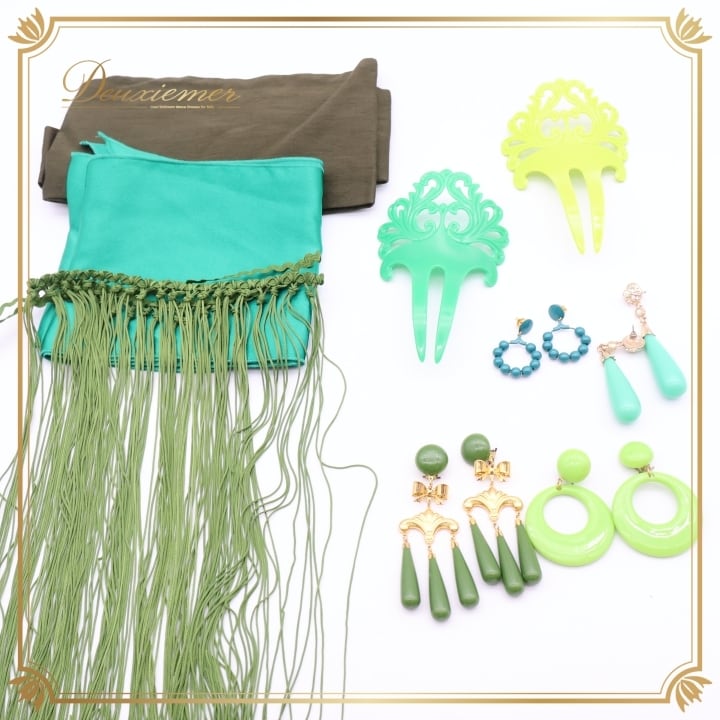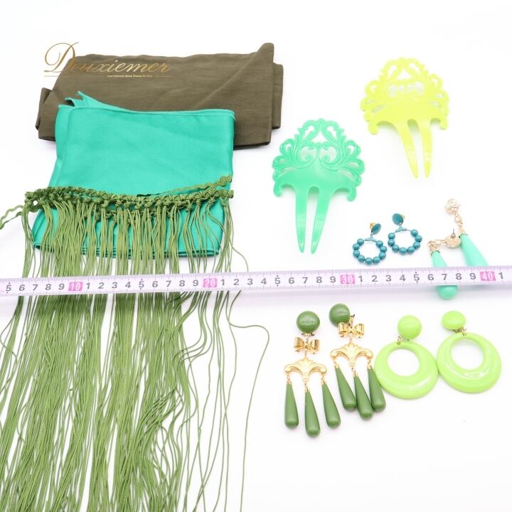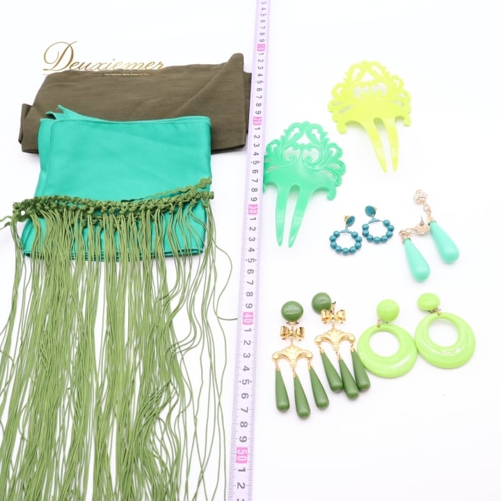 #フラメンコ #小物 #まとめ売り #ダンス #発表会 #イヤリング #ピアス #ベルト #ボウタイ #ガルガンティージャ #ペイネタ #グリーン #カーキ #フラメンコ衣装 #アクセサリー #コスチューム #ファッション #女性用トルソー #ダンスファッション #ENUTSU