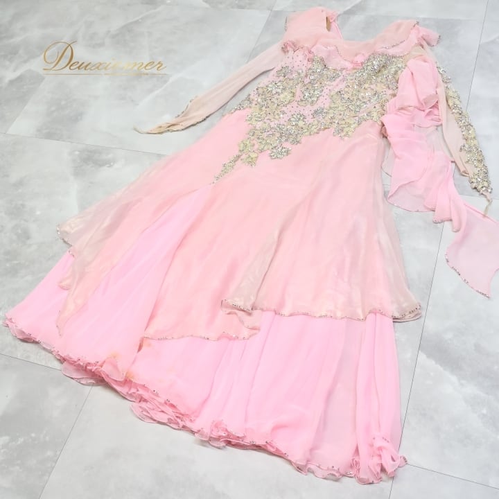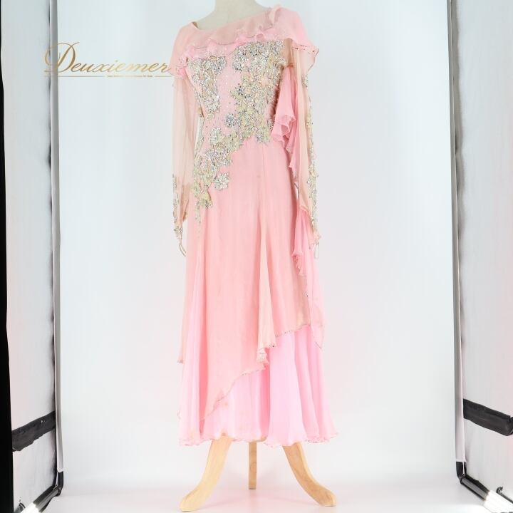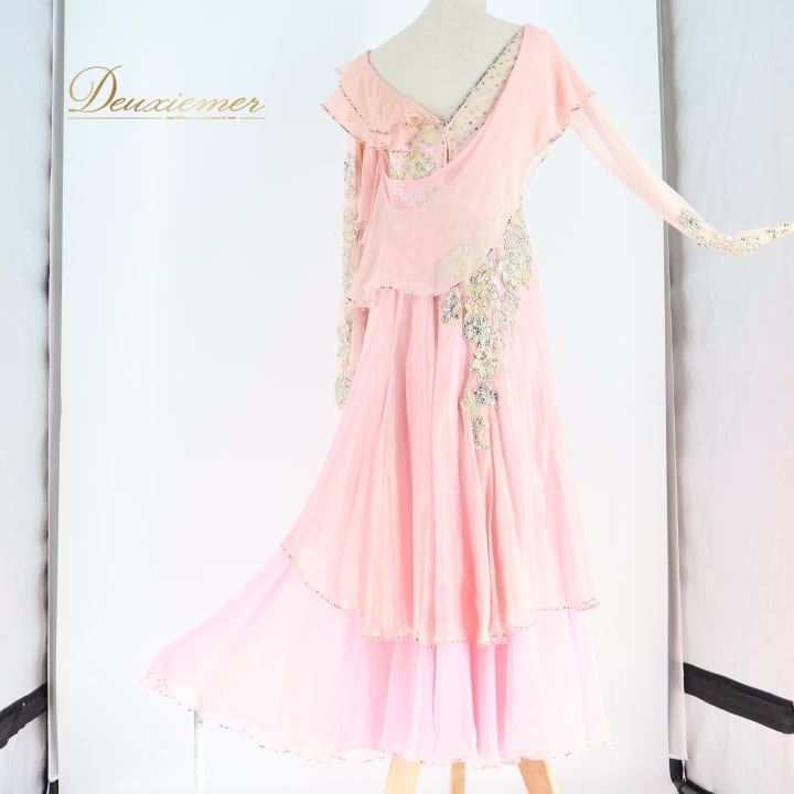 #社交ダンス #ダンス衣装 #ワンピース #ドレス #ピンク #シフォン #かわいい #スカート #柔らかい生地 #ウエスト #ファスナー #ダンススタイル #女性用 #トルソー #ファッション #パーティー #カジュアル #ステージ衣装 #ダンスレッスン #ENUTSU