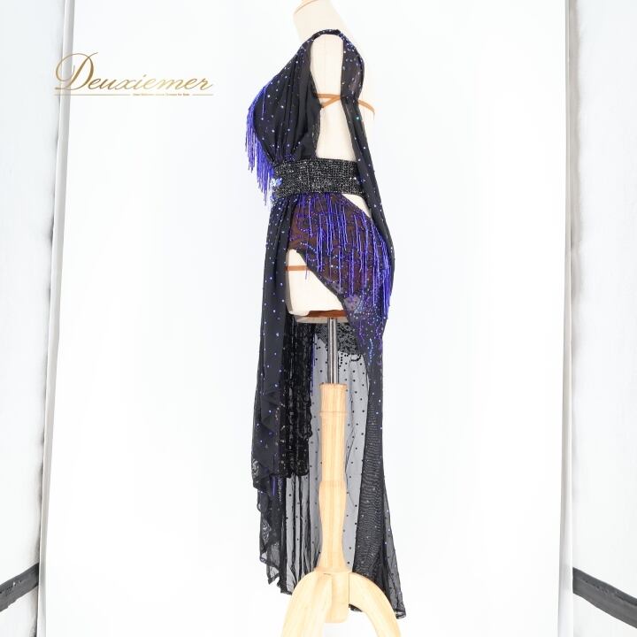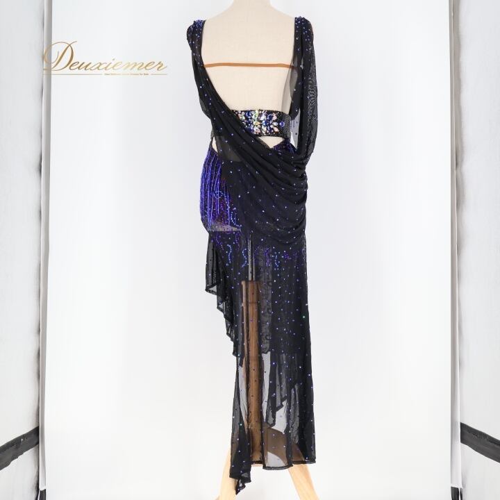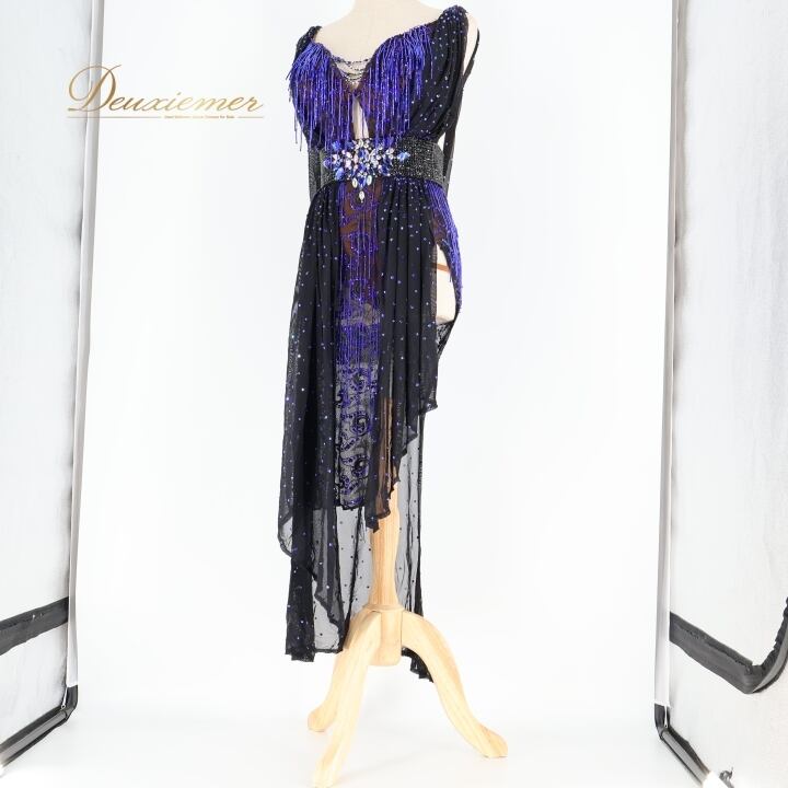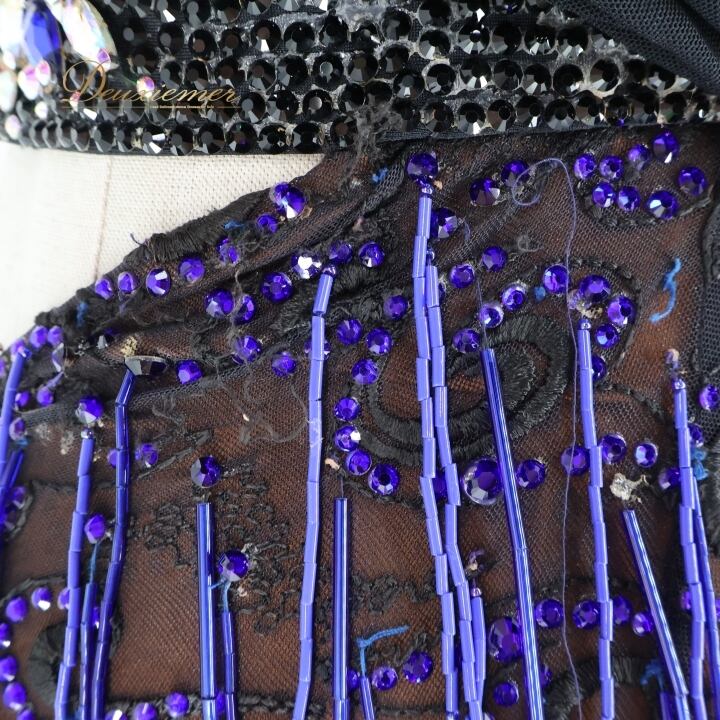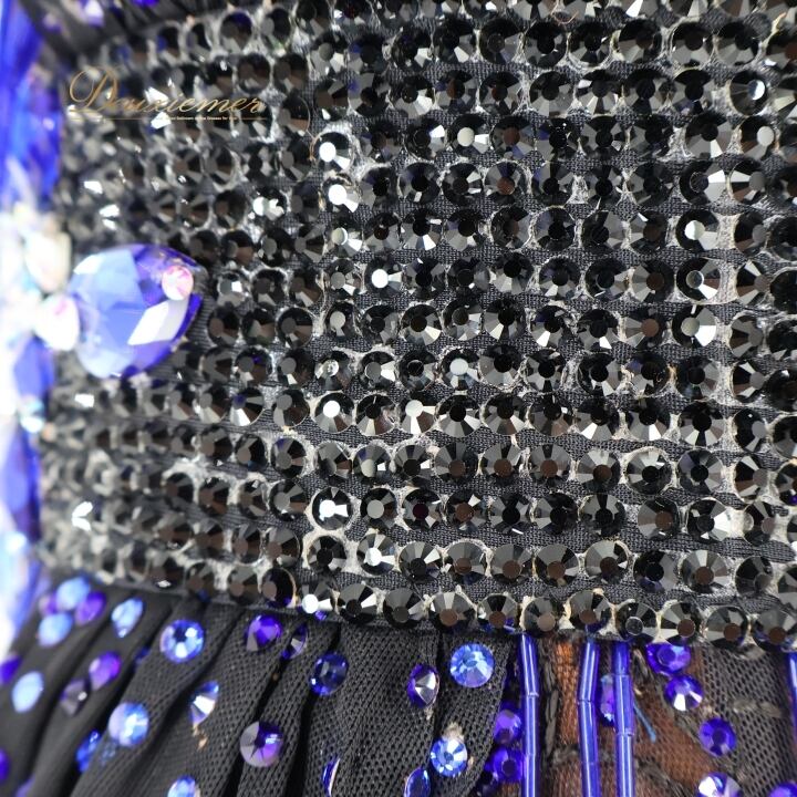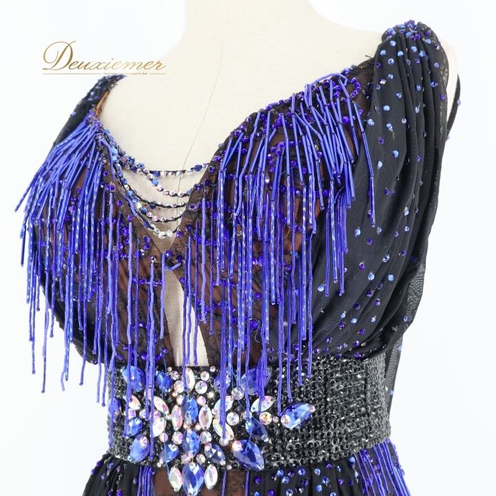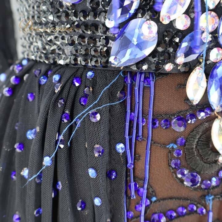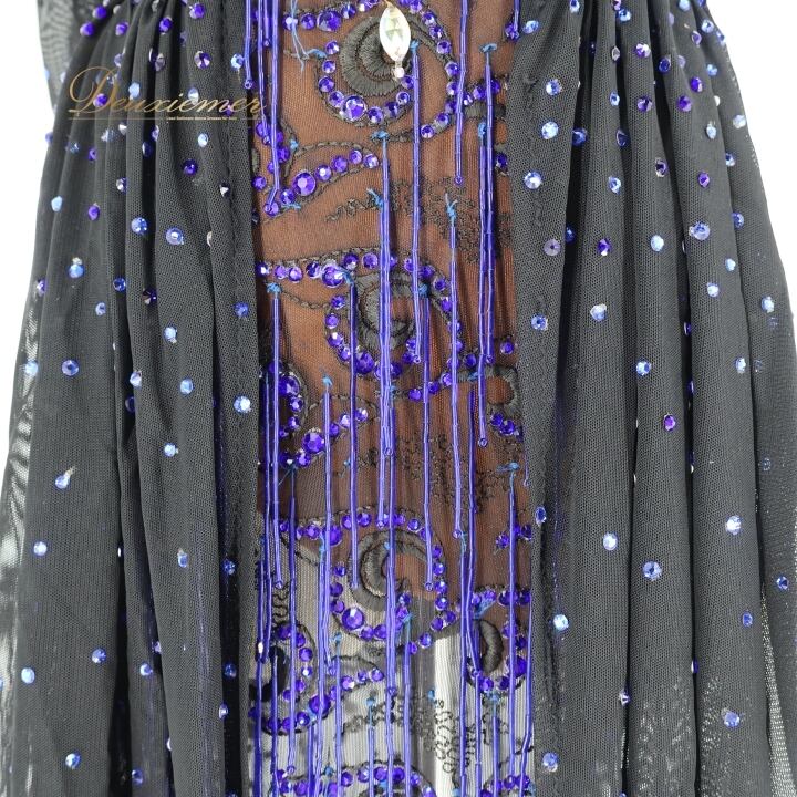 社交ダンス 衣装 ラテン ドレス ワンピース 黒 青 フリンジ レース デモ 競技 ダンス パーティ FLashdance ブラック系 パープル系 ブルー系 おしゃれ 豪華 競技用 衣装 フリンジドレス レースドレス ダンスウェア パーティードレス イベント用 ステージ衣装 ビーズ刺繍 ストレッチ性 ブラック フォーマル コスチューム 個性的