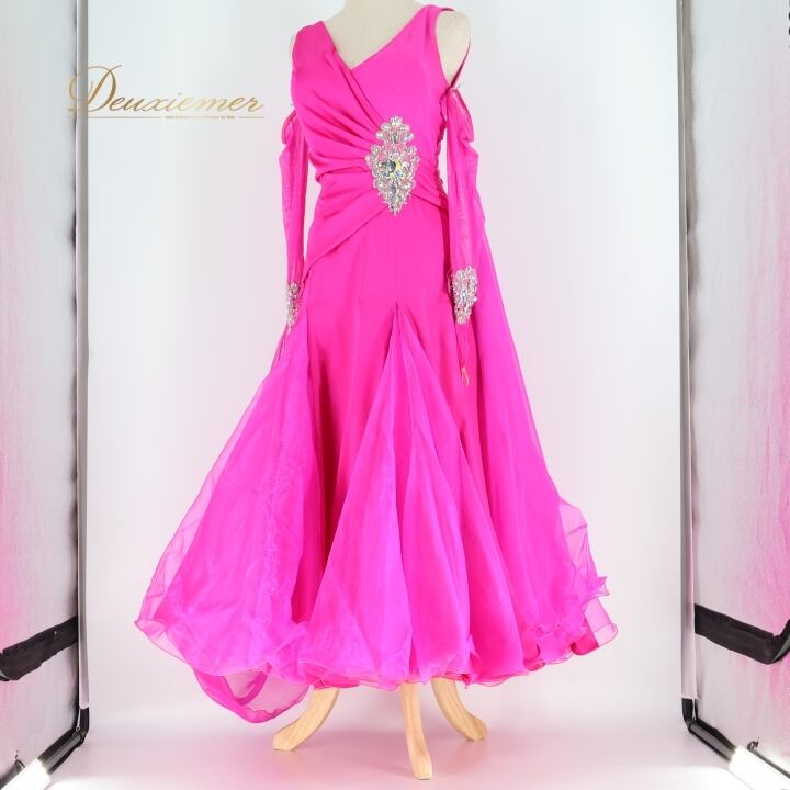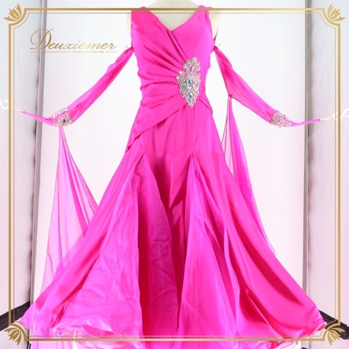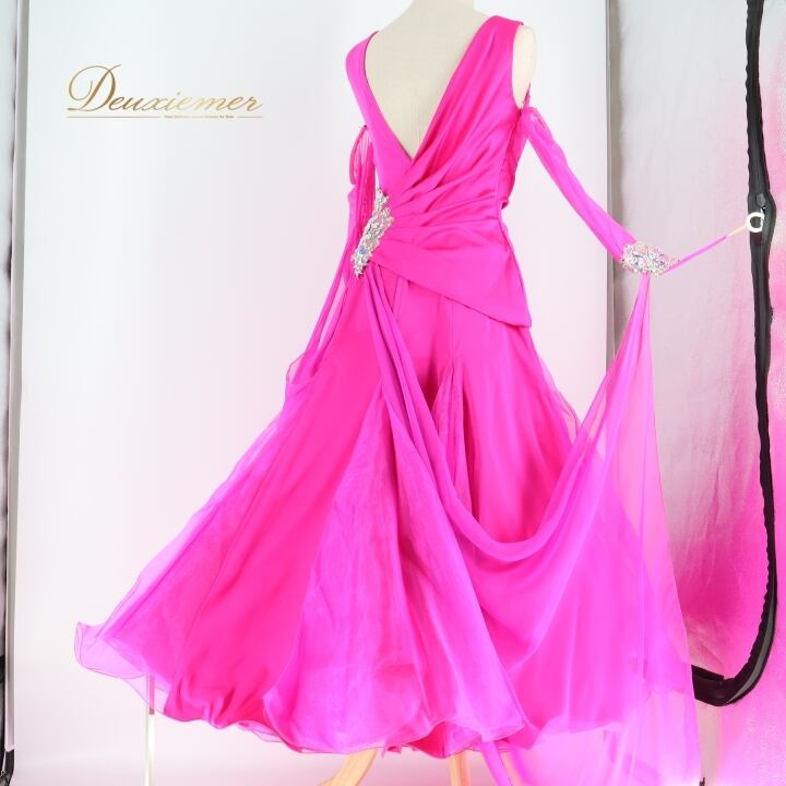 #社交ダンス #ダンス衣装 #ワンピース #ドレス #HISAYA #日本製 #濃いピンク #華やか #フロート #スカート重ね #ダンスパフォーマンス #レオタード #女性用トルソー #ダンスファッション #イベント衣装 #舞台衣装 #ダンス好き #社交ダンス衣装 #おしゃれ #ENUTSU