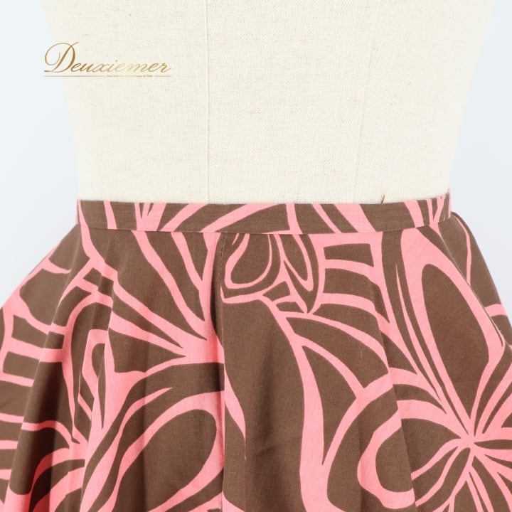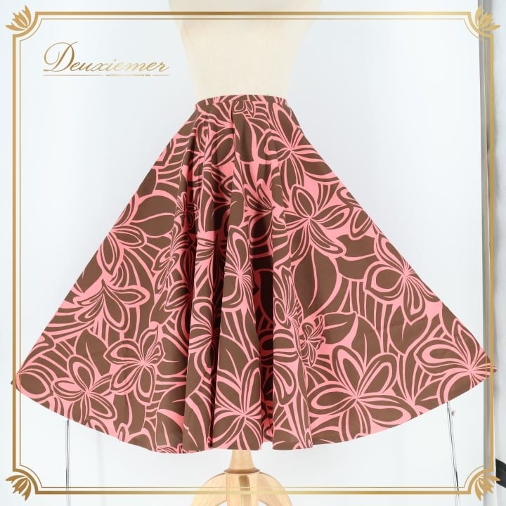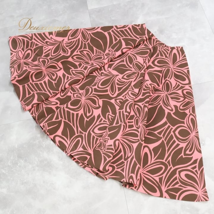 フラダンス 衣装 スカート ブラウン系 プルメリア柄 ハワイアンプリント アロハ フラ ダンス レッスン 練習 花柄 フラワープリント ピンク系 茶 ピンク かわいい おしゃれ 華やか 上品 ふんわり フレアスカート 大人っぽい アロハシャツ フラダンスイベント ダンスウェア 夏用 コーディネート シンプルデザイン リゾートファッション レディーススカート カジュアル おしゃれな装い