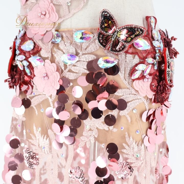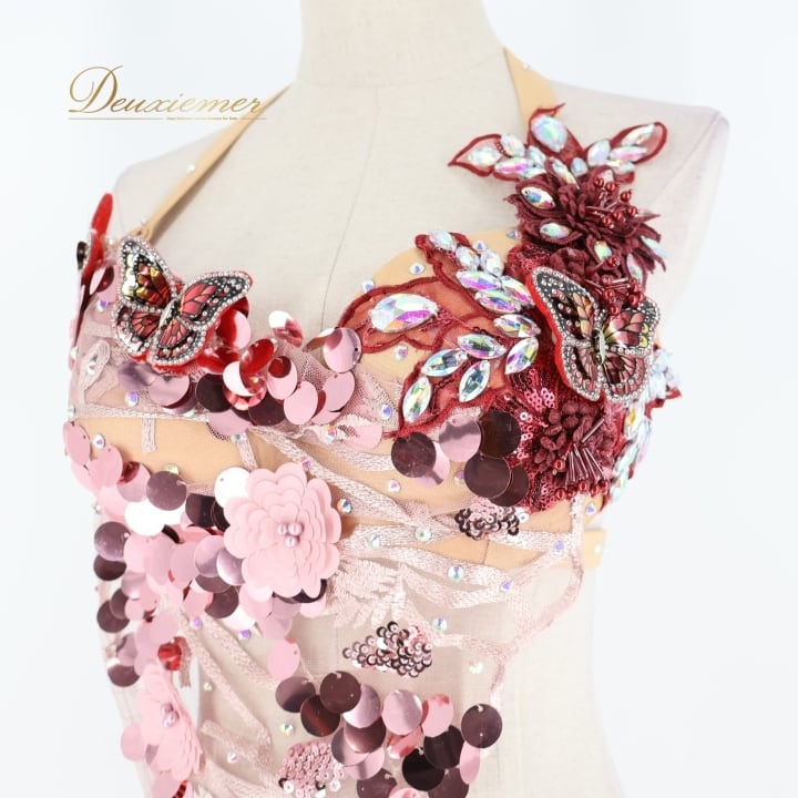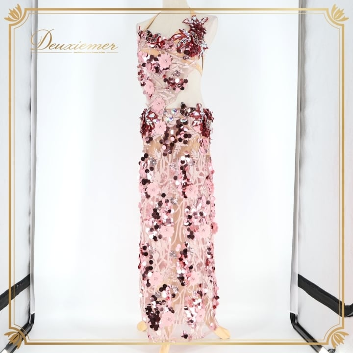 #ベリーダンス #オリエンタル衣装 #ダンス衣装 #ピンク #華やか #女性用衣装 #装飾 #スカート #トルソー #サイズM #ストラップ #ゴム仕様 #花モチーフ #蝶モチーフ #スリットスカート #ダンスパフォーマンス #コスチューム #ファッション #衣装選び #ENUTSU