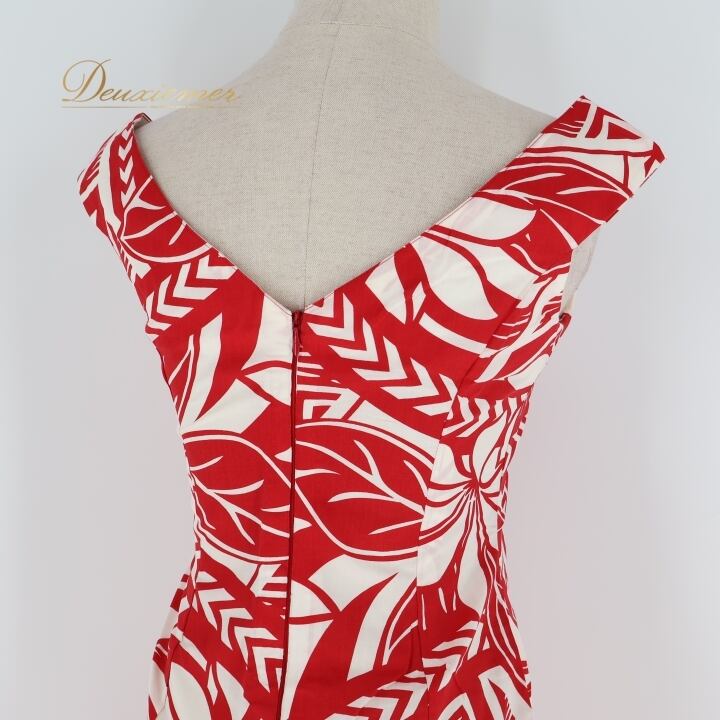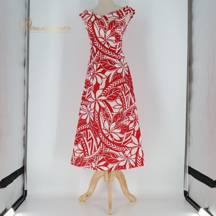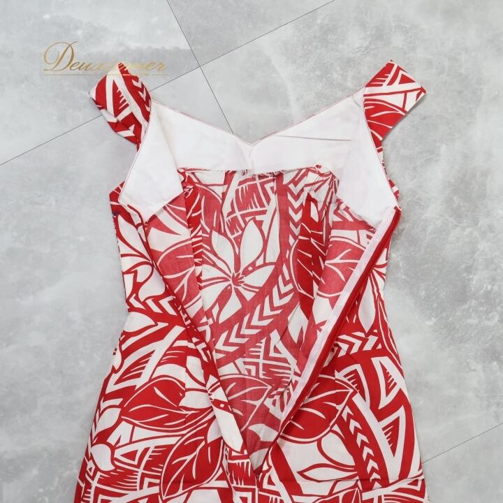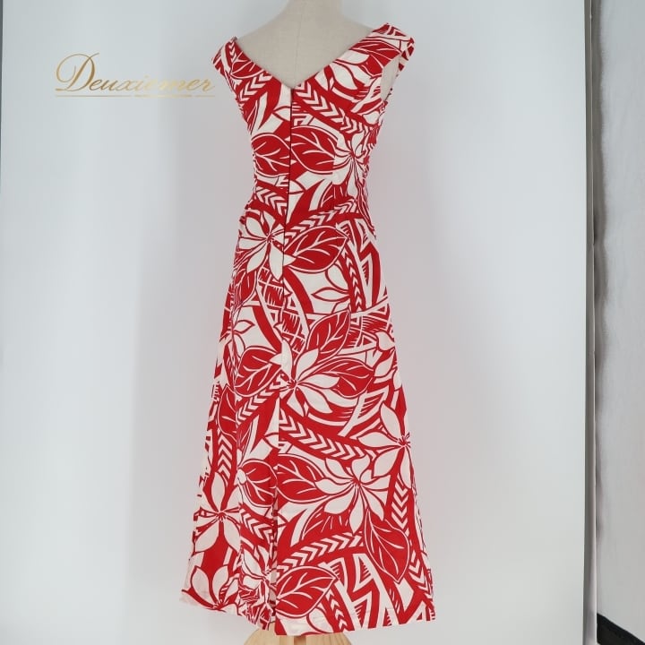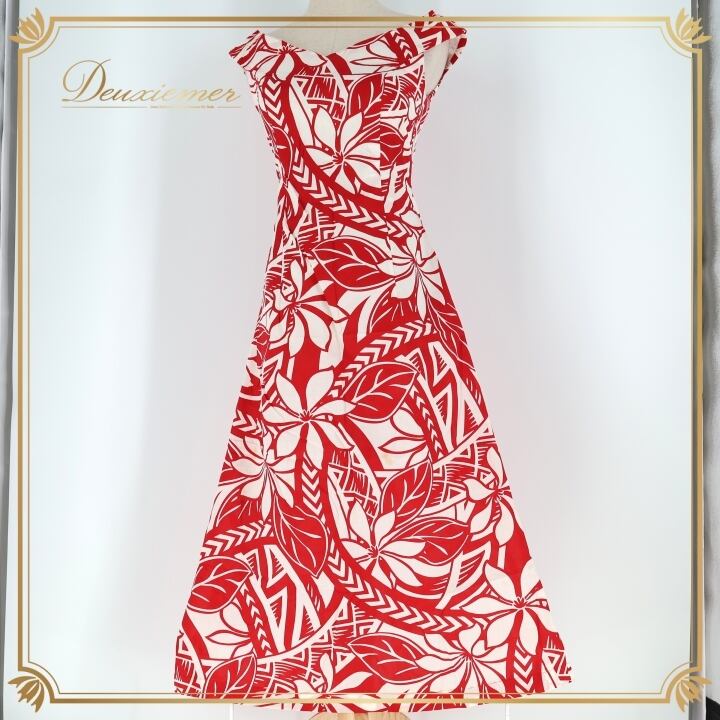 フラダンス 衣装 ワンピース ドレス ホワイト系 ティアレ柄 ハワイアンプリント アロハ フラ ダンス レッスン 練習 ノースリーブ 花柄 植物柄 華やか 鮮やか かわいい おしゃれ 上品 フレアスカート レッド系 白 赤 スリット ハワイアン お祭り リゾート 旅行 夏用 フェス パーティー サマー ドレスアップ シンプル 清楚