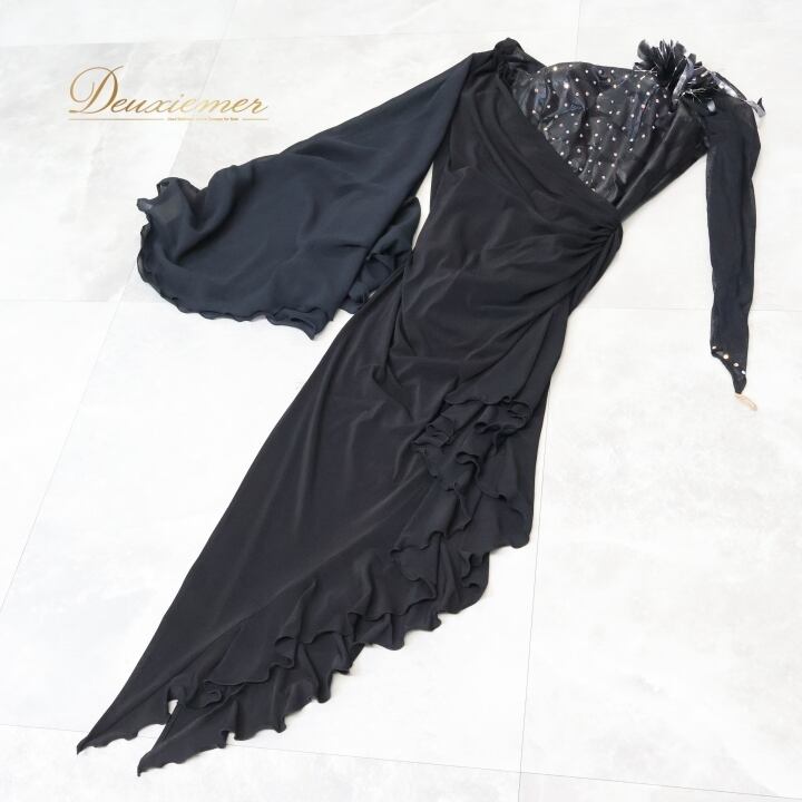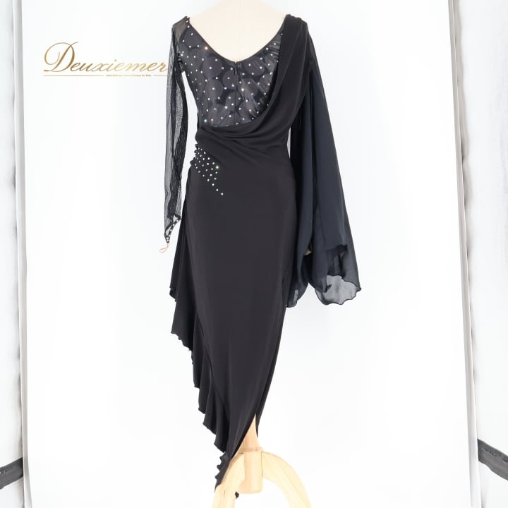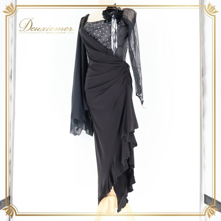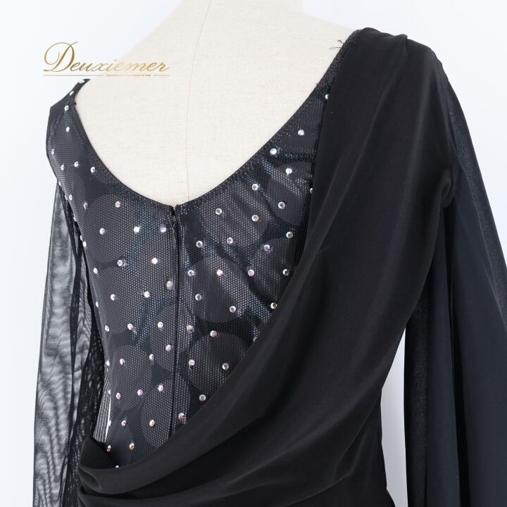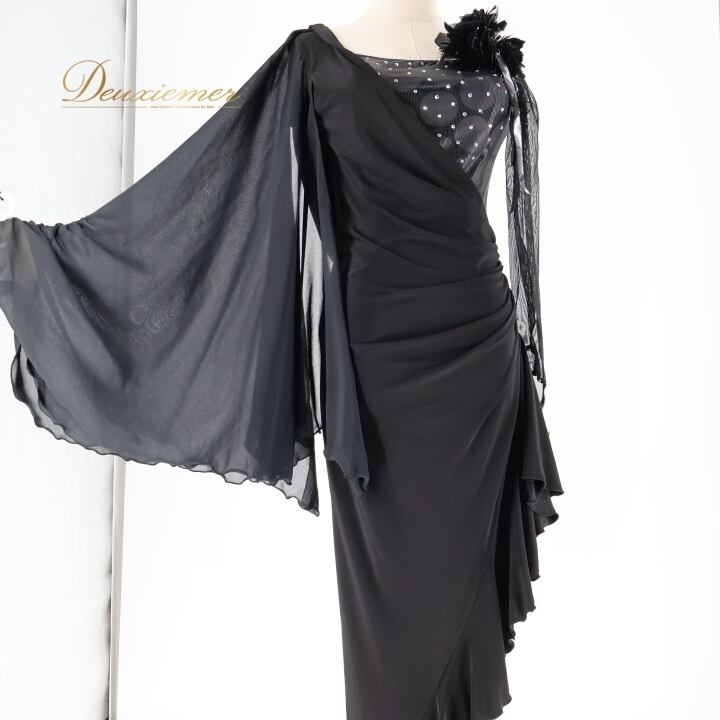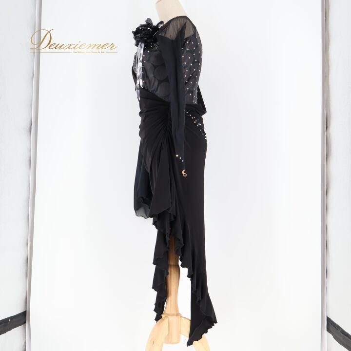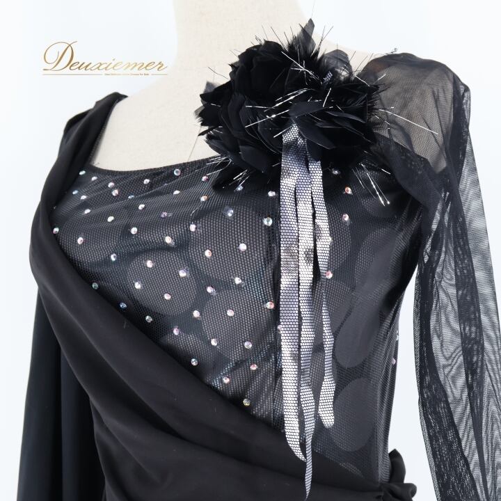 社交ダンス 衣装 ラテン ドレス ワンピース インザムード in the MOOD 日本製 黒 デモ 競技 パーティ 発表会 綺麗 上品 ブラック系 上品なデザイン 社交ダンス衣装 ラテン衣装 フォーマルドレス おしゃれ 衣装発表会 大人向け ファスナー付き 日本製ドレス コサージュ付き 競技用ドレス ブラックワンピース エレガント パーティードレス