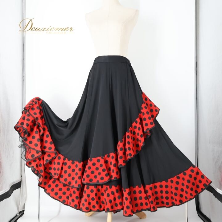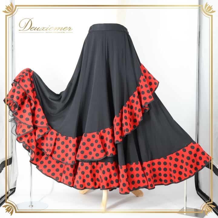 #フラメンコ #フラメンコ衣装 #スカート #ドット柄 #ブラックレッド #プリマブティック #ファルダ #衣装 #ダンス衣装 #フラメンコダンス #コスチューム #舞台衣装 #ファッション #女性用トルソー #ウエストゴム #伸縮性 #おしゃれ #かわいい #ポリエステル #ENUTSU