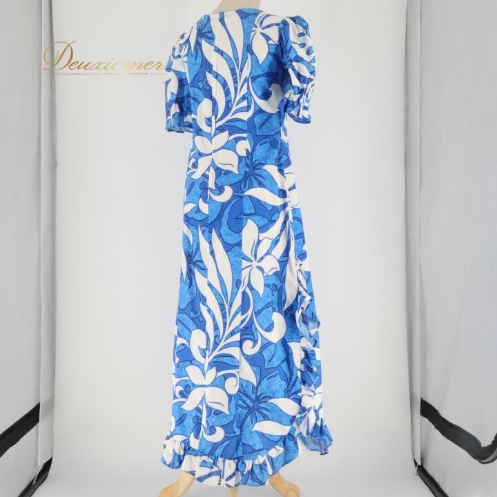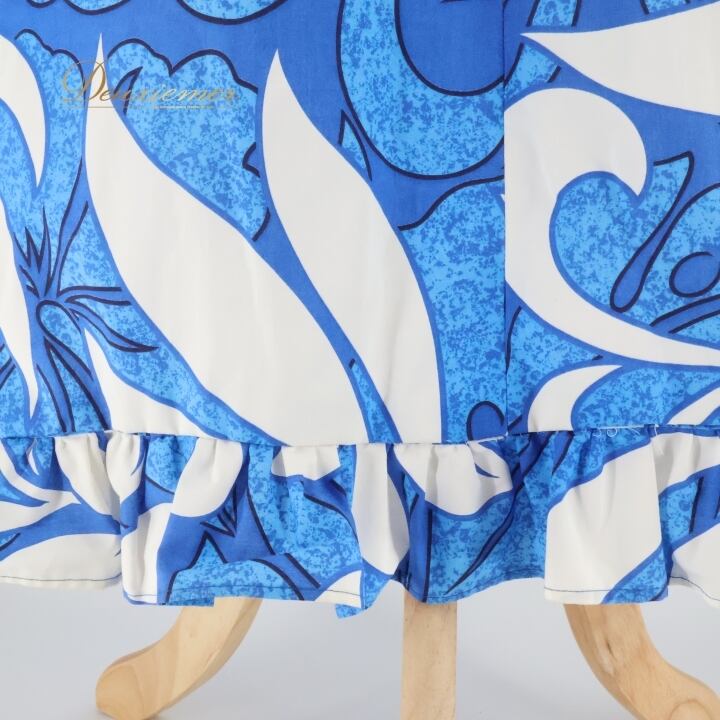 #フラダンス #フラダンス衣装 #ドレス #ワンピース #ブルー #ホワイト #爽やか #スリット #フリル #女性用 #ファッション #衣装 #ダンス衣装 #トルソー #カラフル #おしゃれ #マリンスタイル #パーティー #夏ファッション #ENUTSU