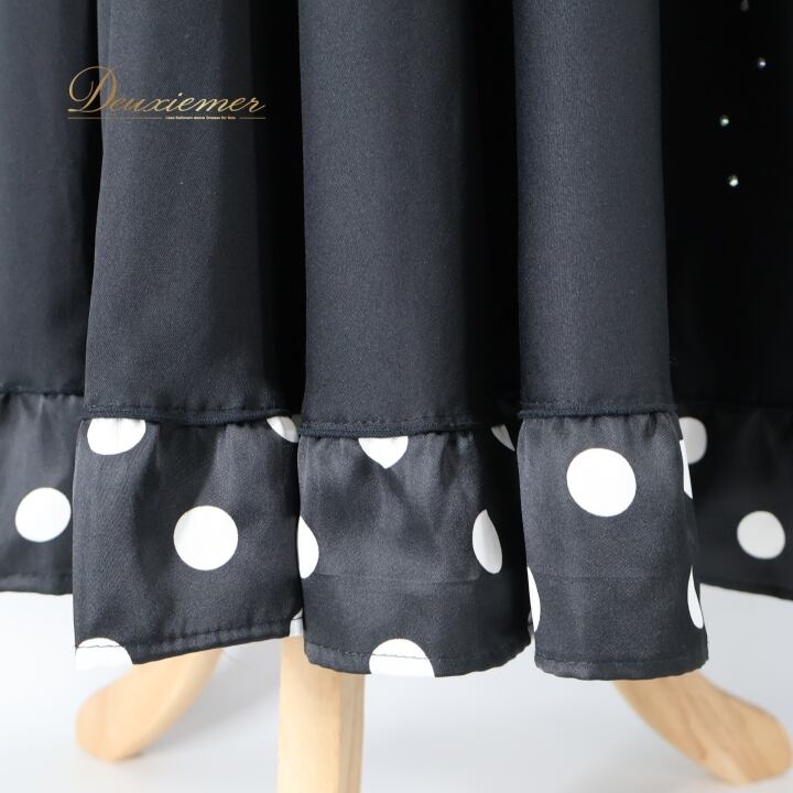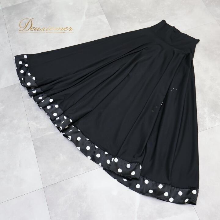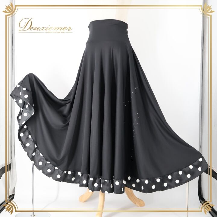 #フラメンコ衣装 #ファルダ #スカート #ドット柄 #ブラックホワイト #ラインストーン #ダンス衣装 #衣装制作 #ステージ衣装 #フラメンコ #パフォーマンス #コスチューム #女性ファッション #伸縮性 #華やか #ポリエステル100 #Mサイズ #トルソー使用 #ダンス #ENUTSU