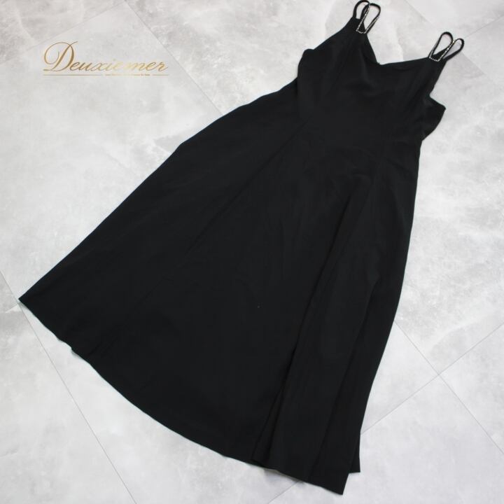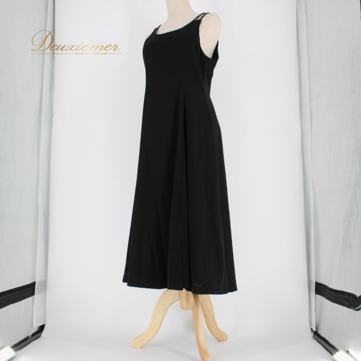 社交ダンス 衣装 スタンダード ドレス ワンピース レッスンウェア パーティドレス Sanline サンリーヌ 黒 無地 シンプル ラインストーン ブラック系 クラシック おしゃれ 可愛い エレガント フォーマル ステージ 舞台 日本製 謝恩会 発表会 ダンス発表会 特別な日 柔らかい 着心地良い シルエット 美しい レディース 体型カバー 丈長 シンプルドレス