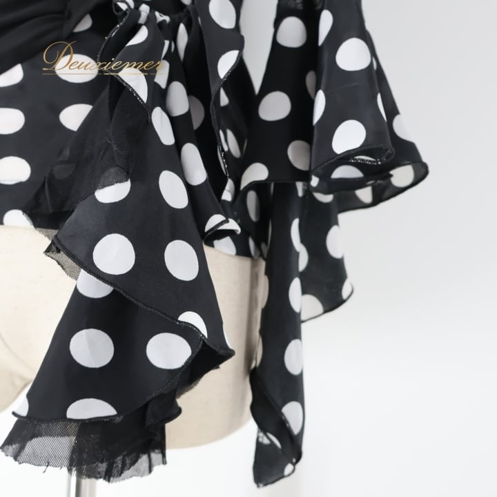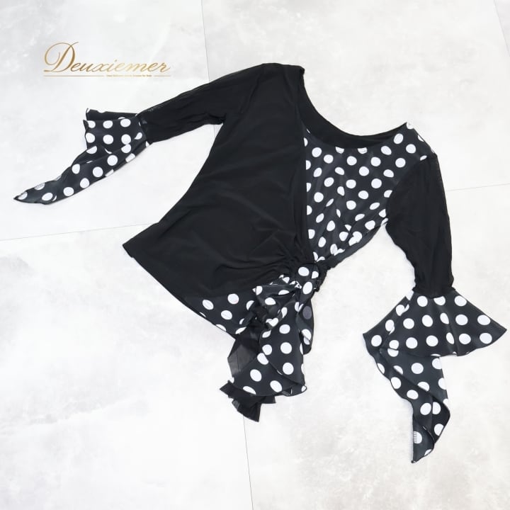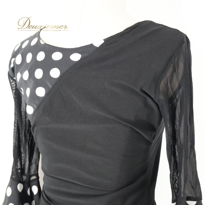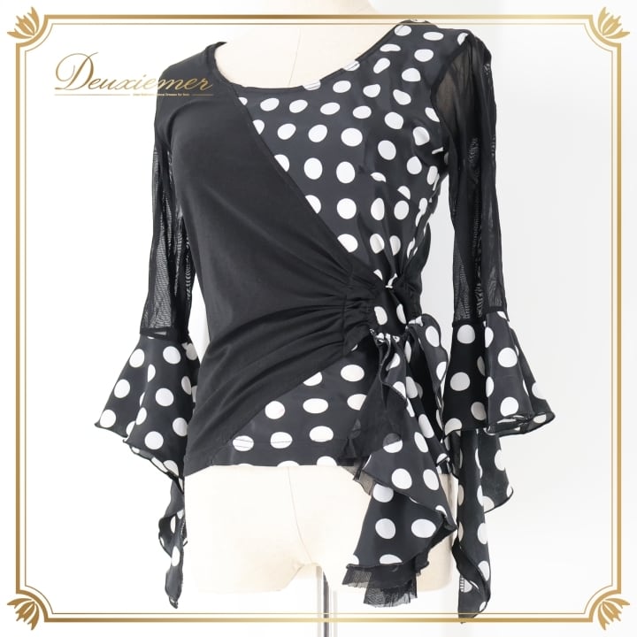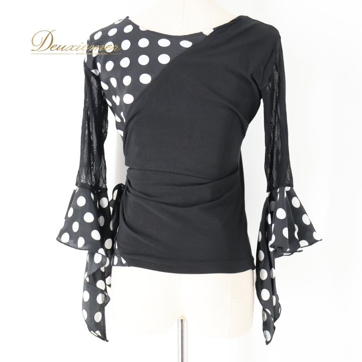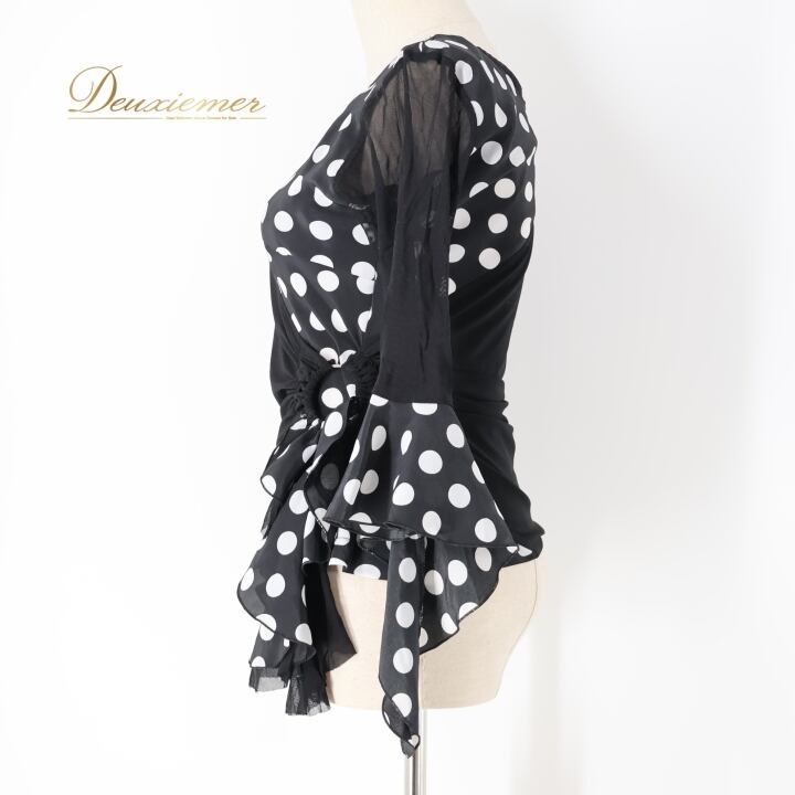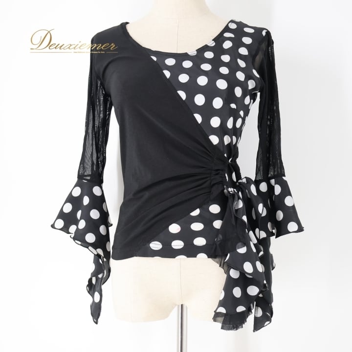 #フラメンコ衣装 #フラメンコ #衣装 #ブラウス #トップス #ドット柄 #モノトーン #ブラックホワイト #ファッション #女性用トルソー #伸縮性 #ポリエステル #シンプル #着こなし #おしゃれ #ダンス衣装 #舞台衣装 #かわいい #スタイル #ENUTSU