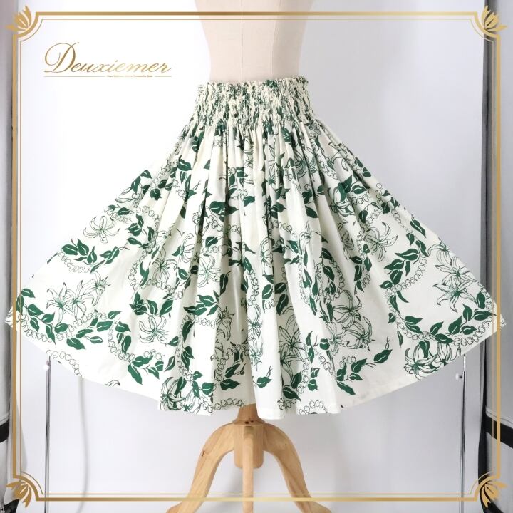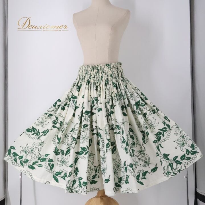 フラダンス 衣装 パウスカート ホワイト系 マカマカ MakaMaka ハワイアンプリント 花柄 植物柄 アロハ フラ ダンス レッスン 練習 シングル スカート フレア ふんわり グリーン系 白 緑 華やか かわいい おしゃれ 上品 大人っぽい フラダンス衣装 夏用 アロハ柄 ハワイアンリゾート おしゃれ着 エスニック カジュアル