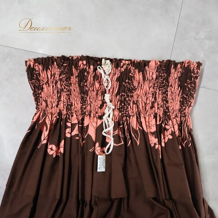 #フラダンス #フラダンス衣装 #パウスカート #ハワイアンファッション #日本製 #ブラウンピンク #かわいい #ウエストゴム #ポリエステル #綿 #アロハ #ダンス衣装 #パーティー #ハワイアンプリント #リゾートファッション #夏コーデ #女性ファッション #トルソー #舞台衣装 #ENUTSU