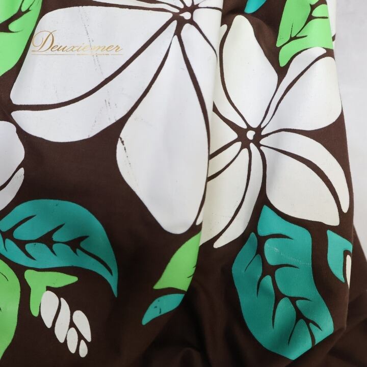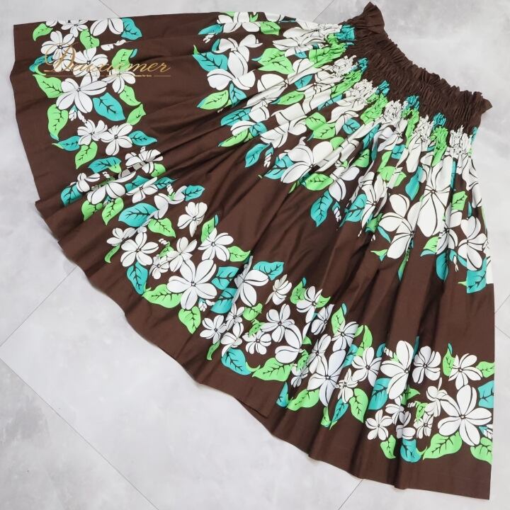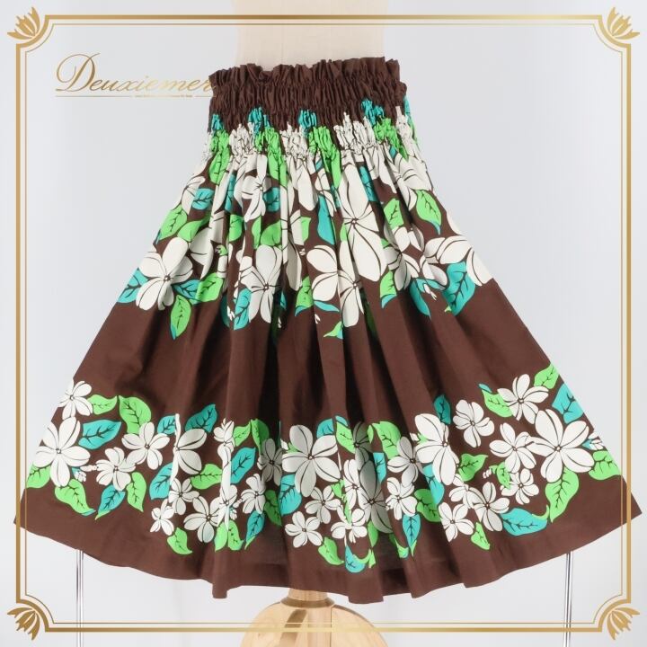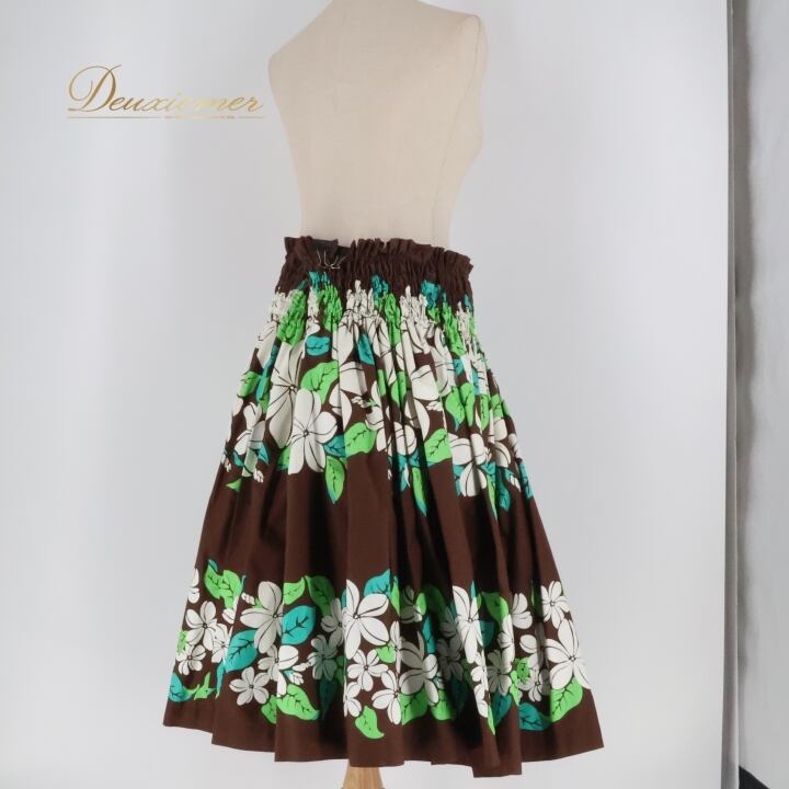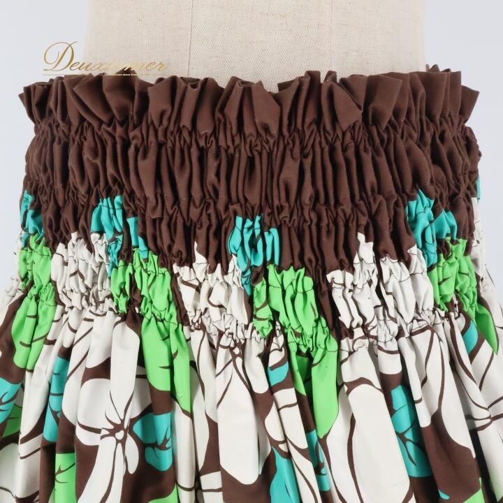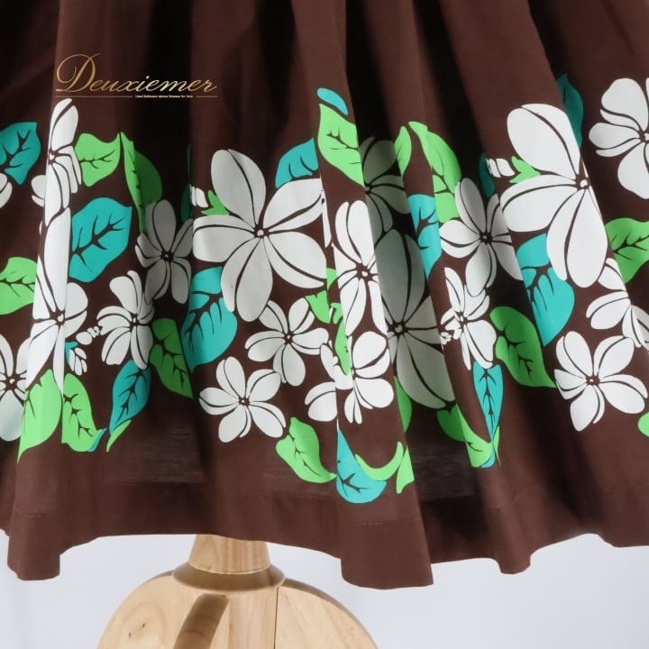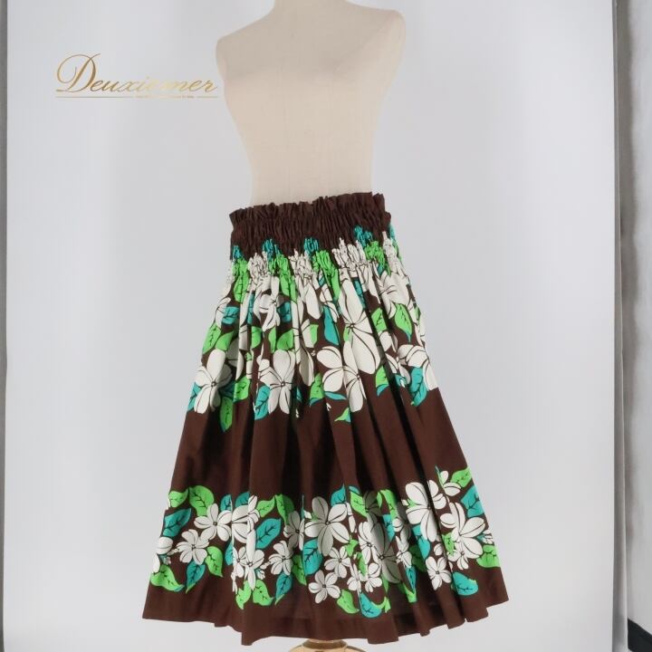 フラダンス 衣装 パウスカート ブラウン系 シングル シンプル プルメリア柄 かわいい 華やか 鮮やか 明るい 茶 白 緑 ハワイアン アロハ ハワイアンプリント フラ ダンス レッスン 練習 ホワイト系 グリーン系 大人っぽい 花柄 スカート カジュアル