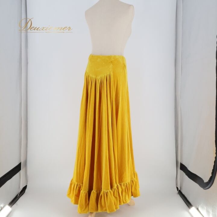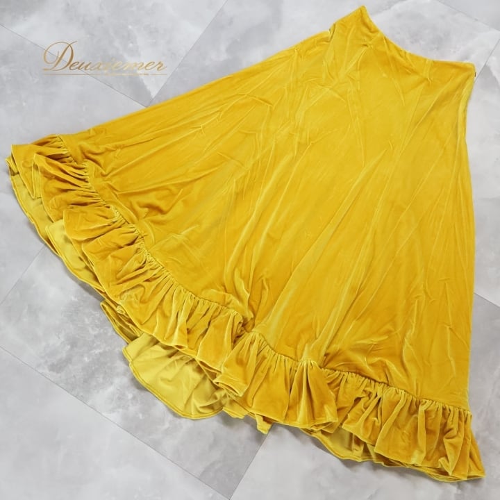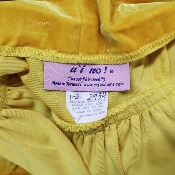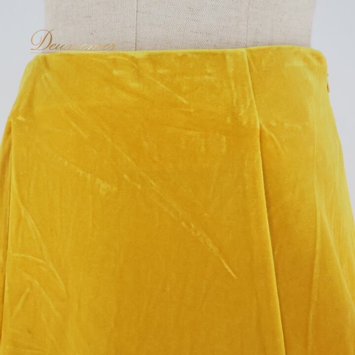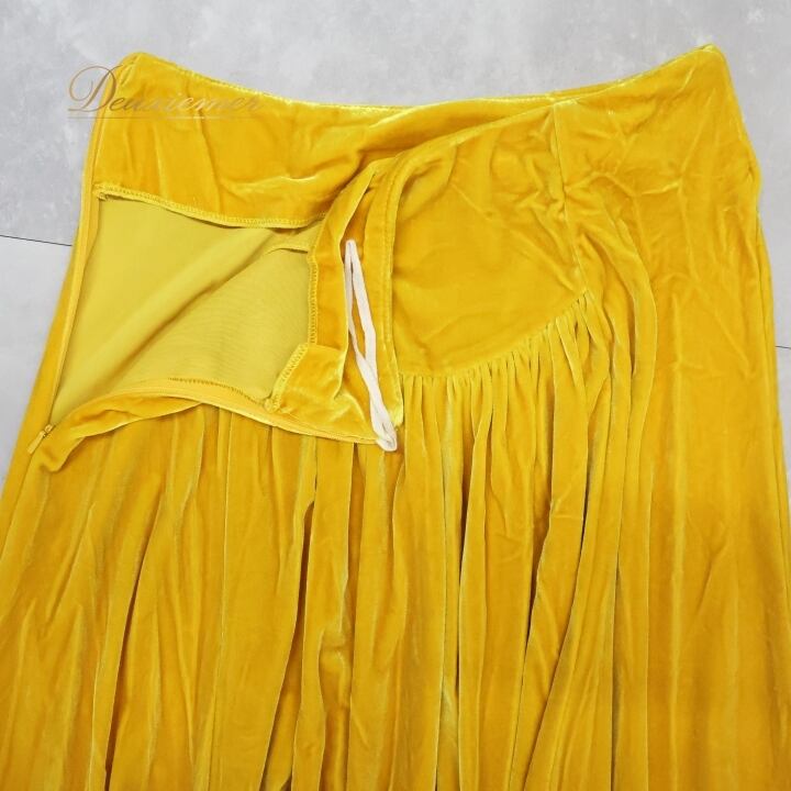フラダンス 衣装 スカート uino! イエロー系 ハワイ製 ベロア生地 無地 シンプル アシンメトリー フリル 上品 高級感 豪華 華やか 鮮やか 明るい かわいい 黄 ハワイアン アロハ フラ ダンス レッスン 練習 シンプルスタイル