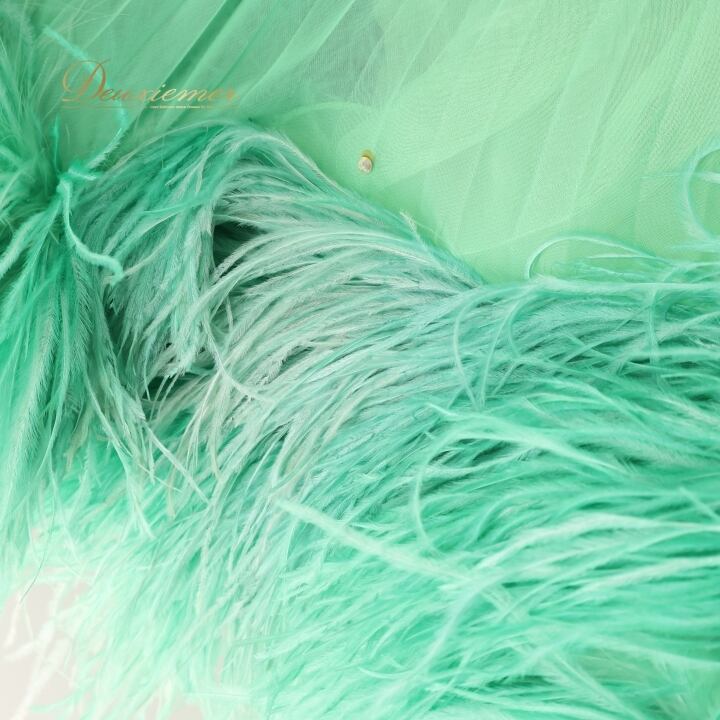 ▽大きなフロート&ファーが華やかに舞うドレス