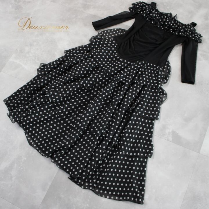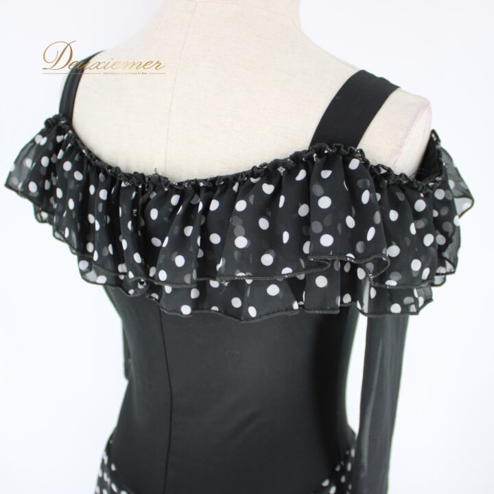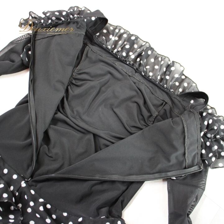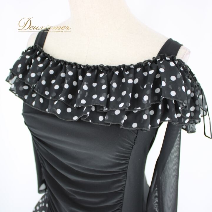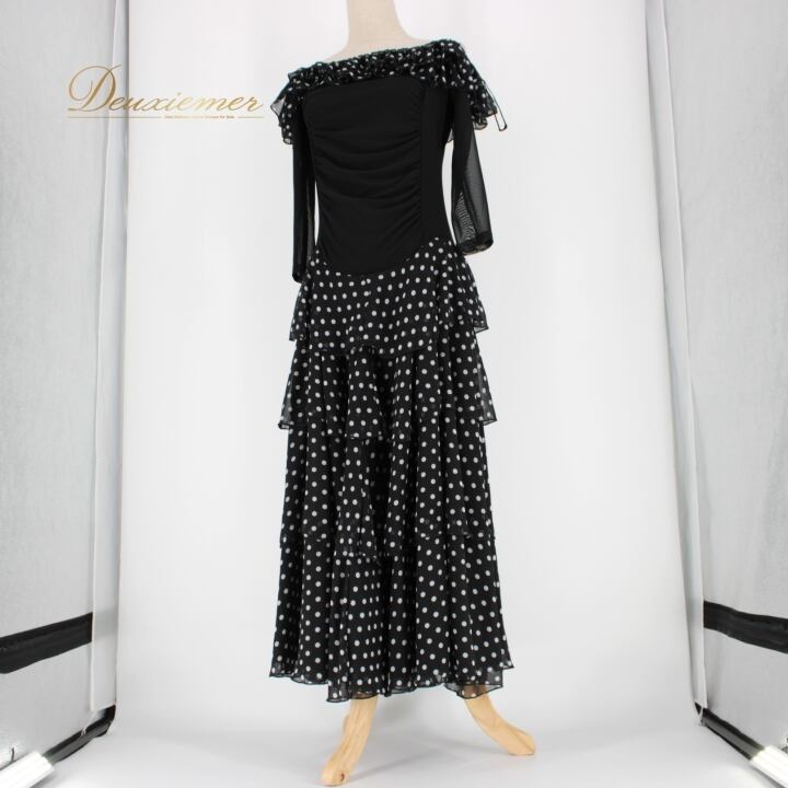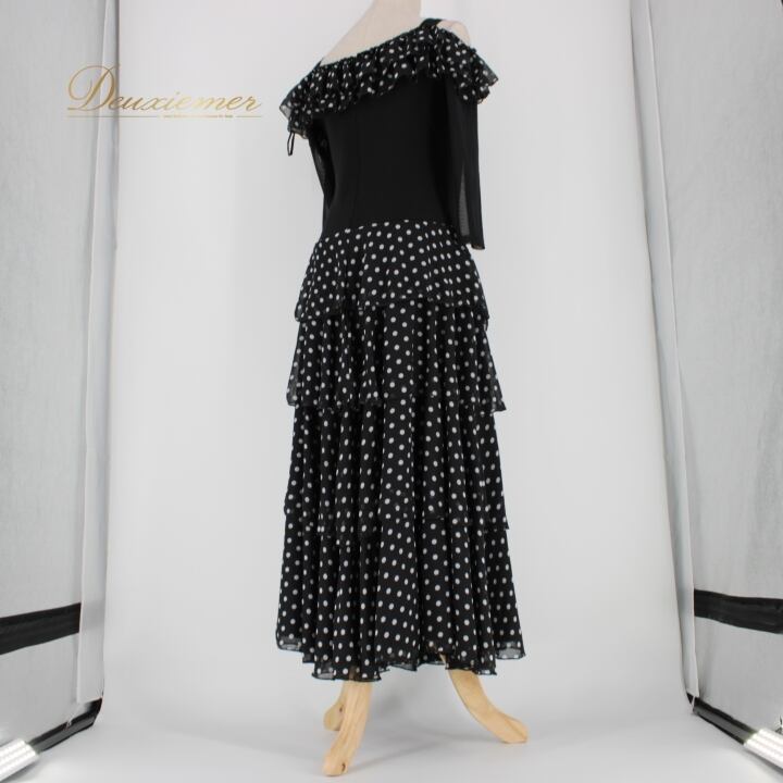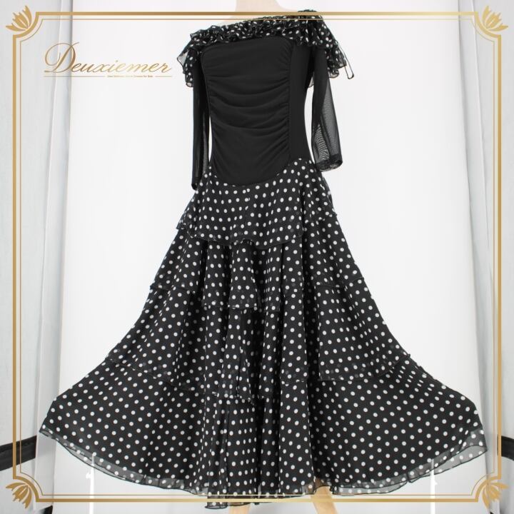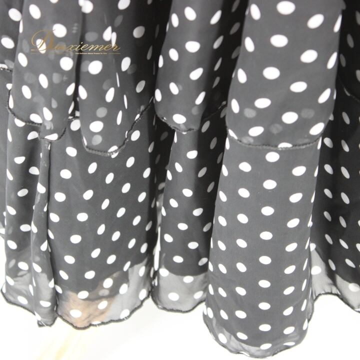 #社交ダンス #ダンス衣装 #ダンスドレス #レトロファッション #ドット柄 #トレンド #ファッション #ブラックホワイト #二重スカート #伸縮性 #ポリエステル #ファスナー #女性用 #デザイン #おしゃれ #可愛い #ダンス #ダンススタイル #イベント #ENUTSU
