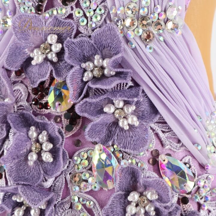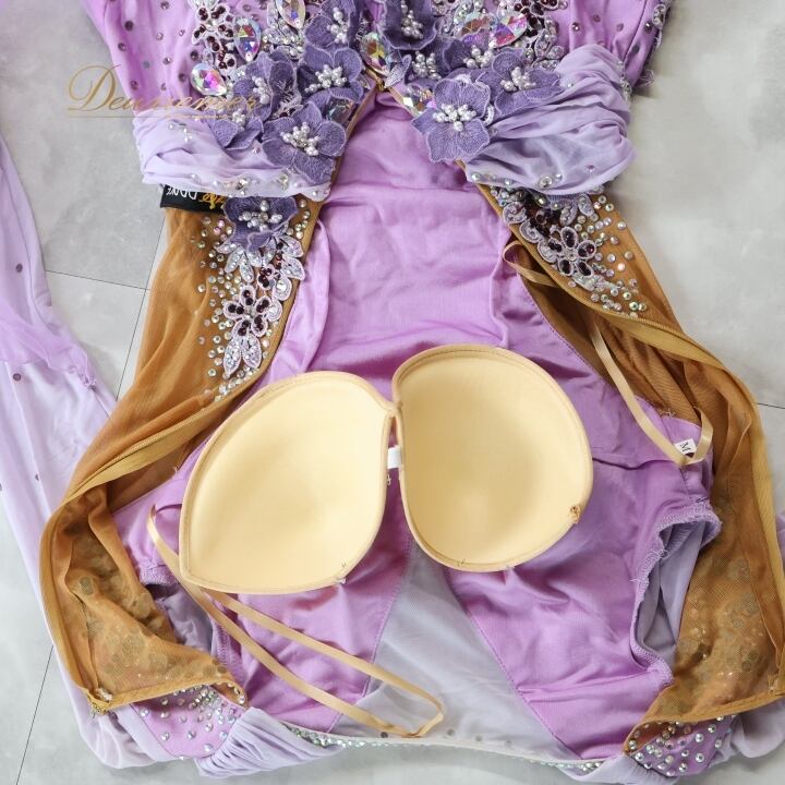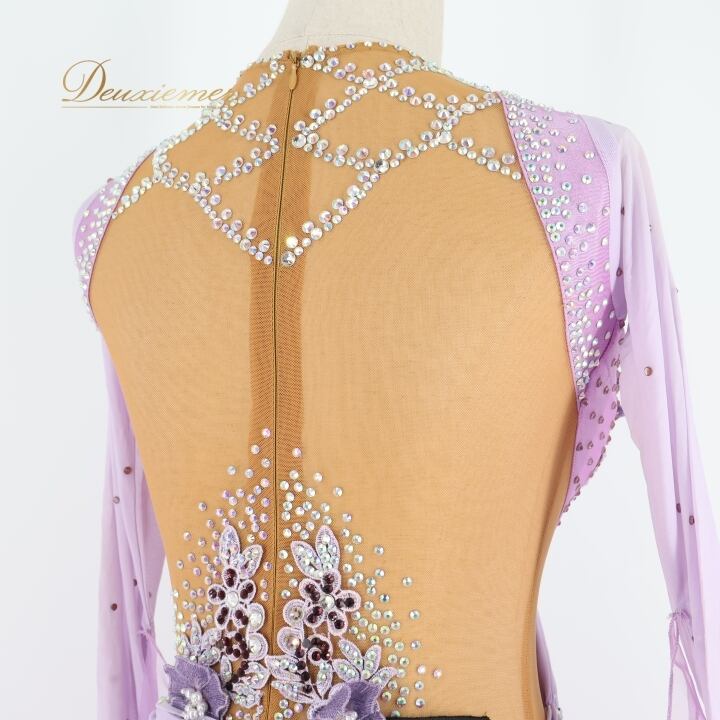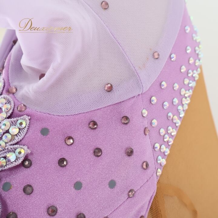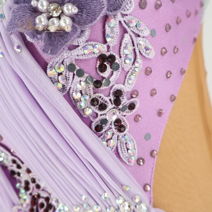 #社交ダンス #ダンス衣装 #ワンピース #ドレス #ラベンダー #女性らしい #花の装飾 #スカート #ファスナー #レオタード #伸縮性 #胸パッド #オシャレ #トルソー #ダンスファッション #カルチャー #ダンススタイル #パーティードレス #Mサイズ #ENUTSU
