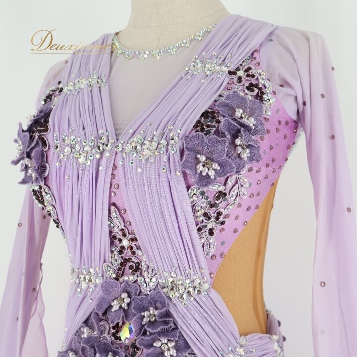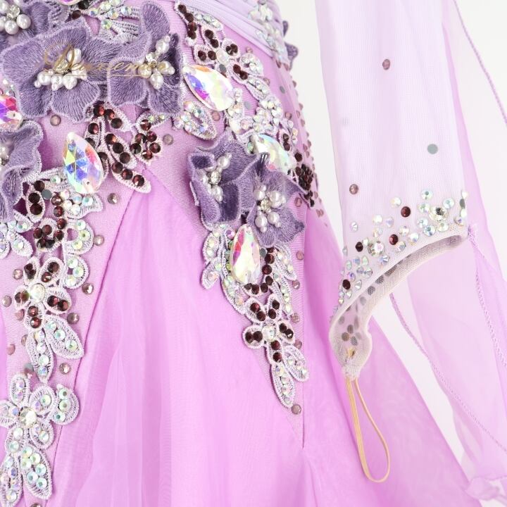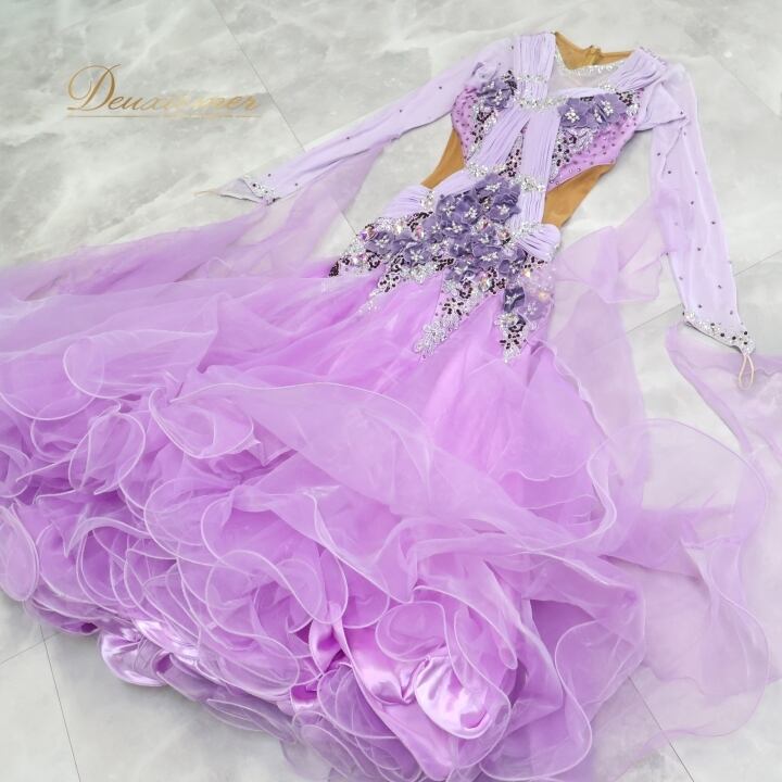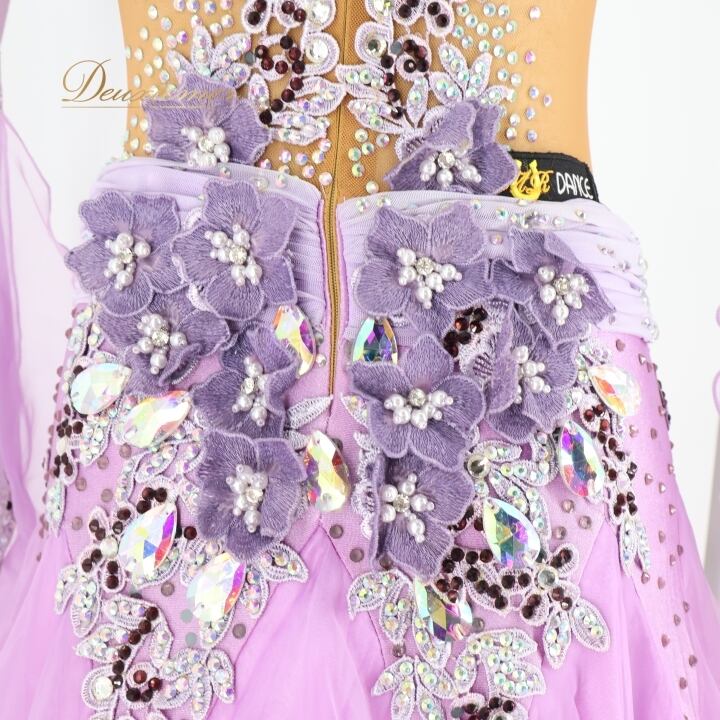 社交ダンス 衣装 スタンダードドレス ワンピース ドレス スタンダード 紫 ラベンダー フリル レース デモ 競技 ダンス パーティ 発表会 綺麗 花 MR DANCE パープル系 フォーマル ドレスアップ 競技用 スカート かわいい 女性用 お洒落 イベント用 華やか 豪華 演出用 パーティーウェア