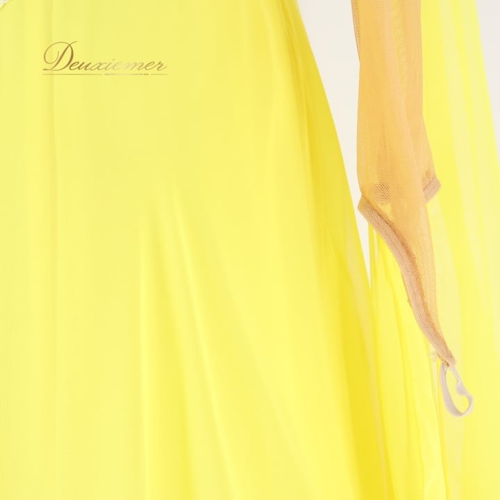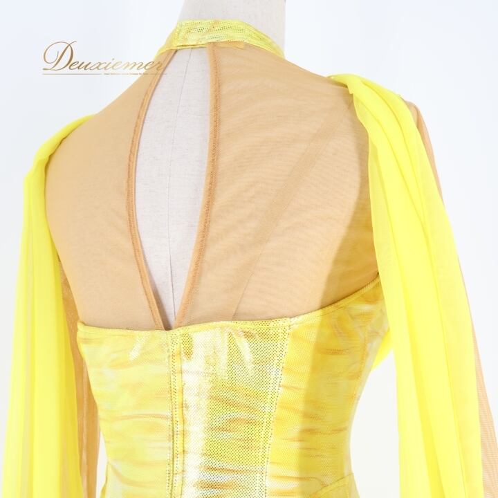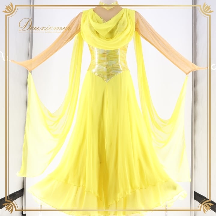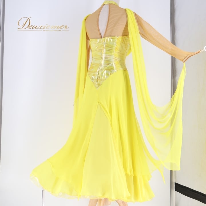 社交ダンス 衣装 スタンダードドレス ワンピース ドレス ソレリ SORELI 日本製 黄色 フロート レース 光沢 艶 パーティドレス パーティ 発表会 無地 ホログラム イエロー系 フェス コスチューム 競技用 舞台衣装 柔らかい フリル 大人 女性用 ステージ用 ゴージャス キラキラ シンプル 美しい フェミニン