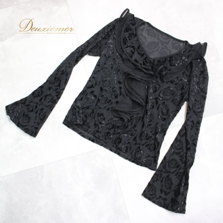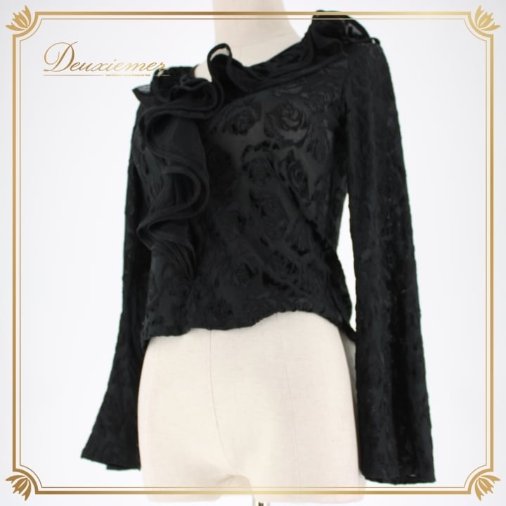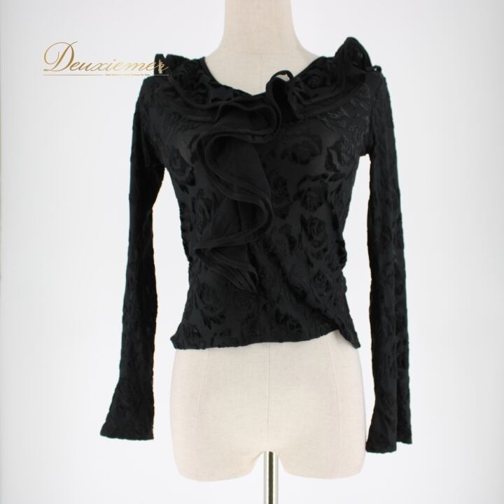 社交ダンス 衣装 スタンダード トップス レッスンウェア ICHIOKU イチオク 黒 レース ブラック系 花柄 長袖 フリル 練習着 上品 気品 モダン ダンスウェア フェミニン ショート丈 エレガント 伸縮性 練習用 レディース おしゃれ シック コーディネート クリエイティブ