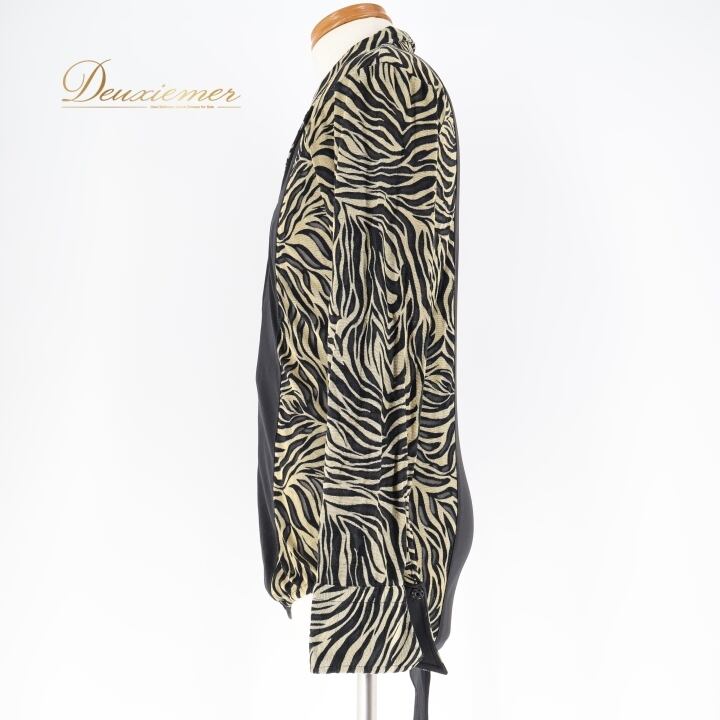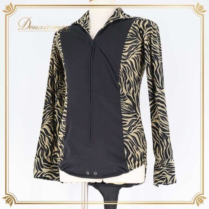 社交ダンス 衣装 ブラウス トップス メンズ MAISON DE DANSE ゼブラ 黒 金 ストレッチ 伸縮 ラテン ジャズ パーティ 発表会 男性 ブラック系 ゴールド系 ファッション ダンスウエア サルサ カジュアルシャツ おしゃれ ゼブラ柄 メンズファッション ステージ衣装 パフォーマンス用