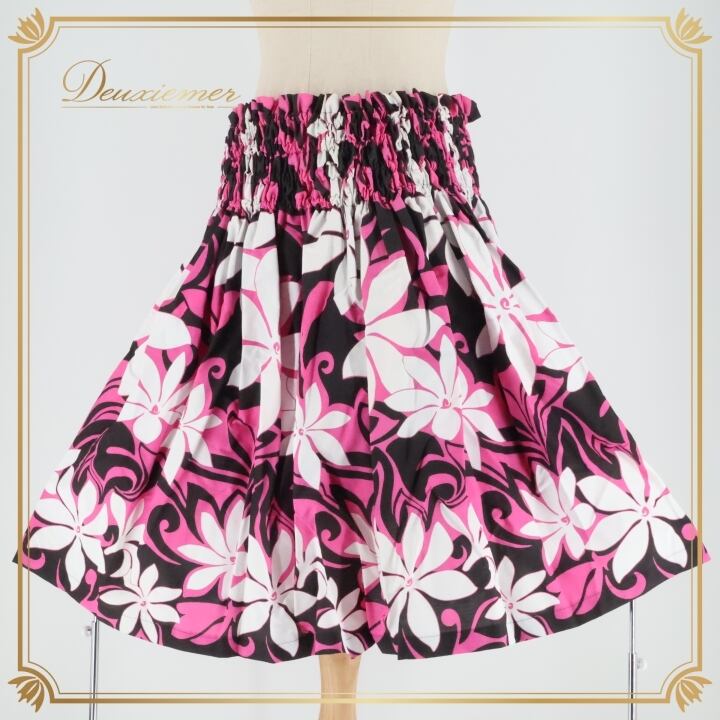 フラダンス 衣装 パウスカート ピンク系 シングル ティアレ柄 ブラック系 ホワイト系 かわいい 華やか 鮮やか 明るい カラフル 白 黒 ハワイアン アロハ ハワイアンプリント フラ ダンス レッスン 練習 大きな花柄 おしゃれ 可愛い エレガント