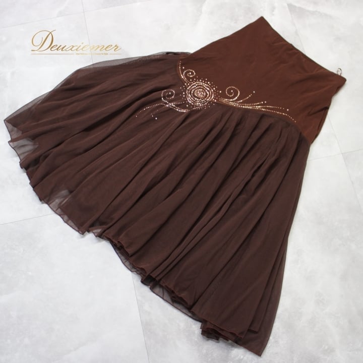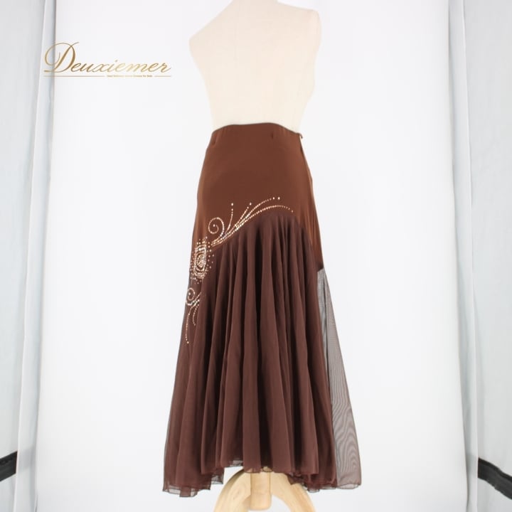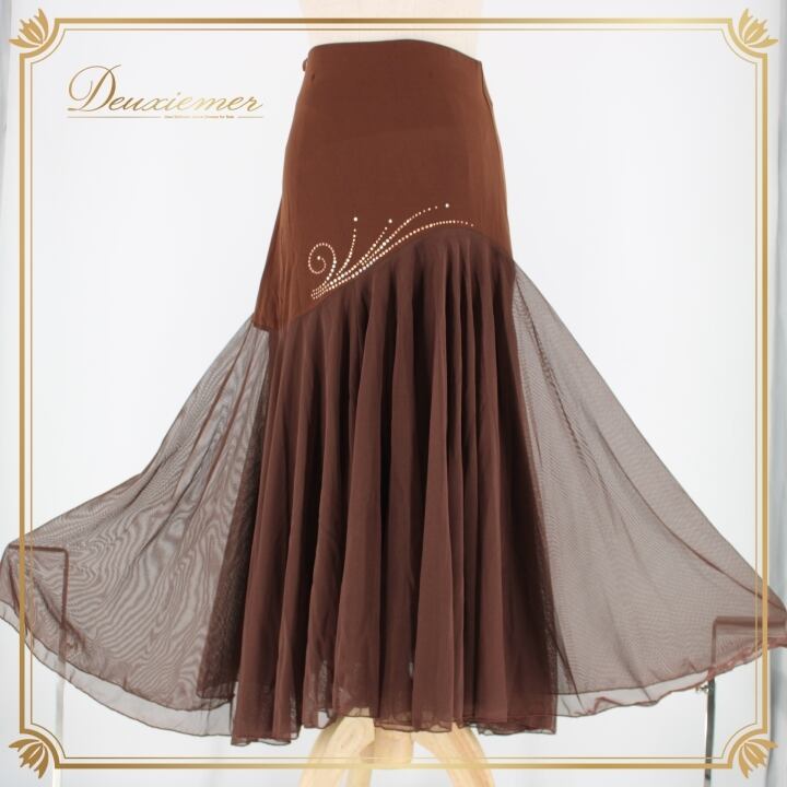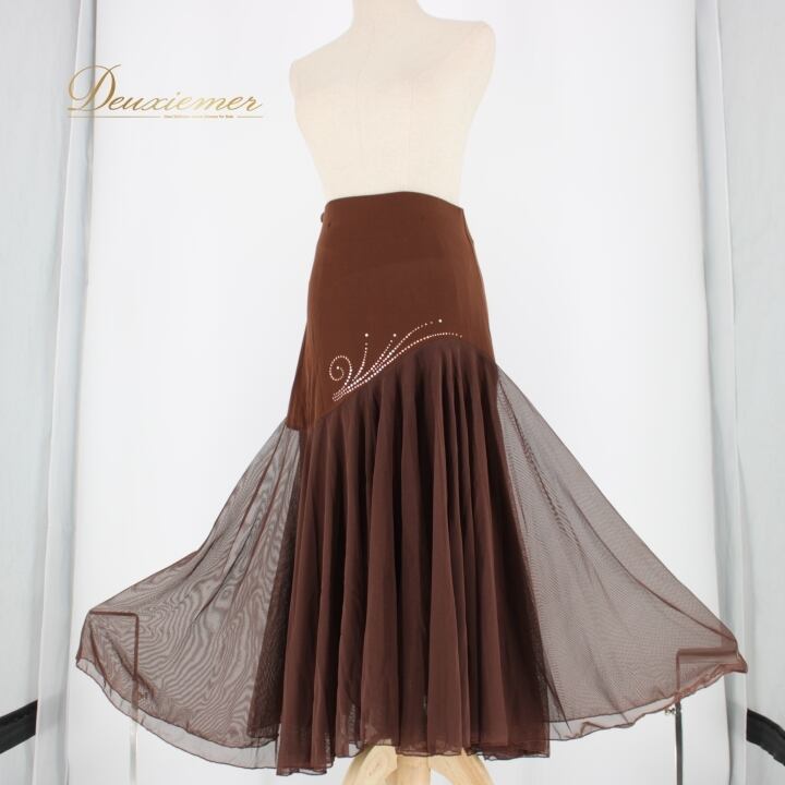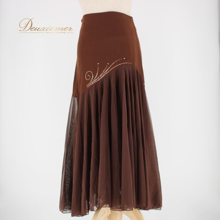 #社交ダンス #ダンス衣装 #スカート #ダンスファッション #ダンスウェア #大人ブラウン #ラインストーン #ウエストゴム #伸縮性 #ダンススタイル #普段使い #ファッション #舞台衣装 #ダンスパフォーマンス #クールスタイル #スタイリッシュ #トルソー #オシャレ #女性用トルソー #ENUTSU
