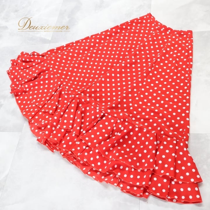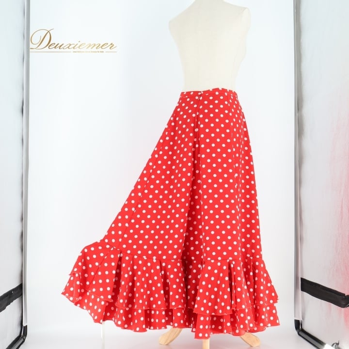 #フラメンコ #衣装 #スカート #ファルダ #赤白 #ダンス衣装 #ダンススカート #ポップデザイン #重ね着 #ボリュームアップ #フラメンコダンス #舞台衣装 #ダンスファッション #女性用トルソー #サイズ40 #ポリエステル #背面ファスナー #おしゃれ #かわいい #ENUTSU