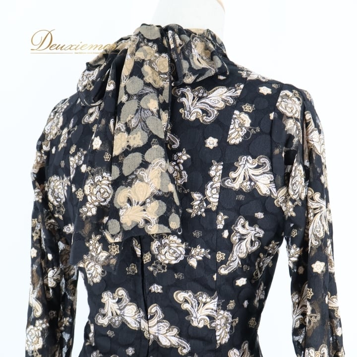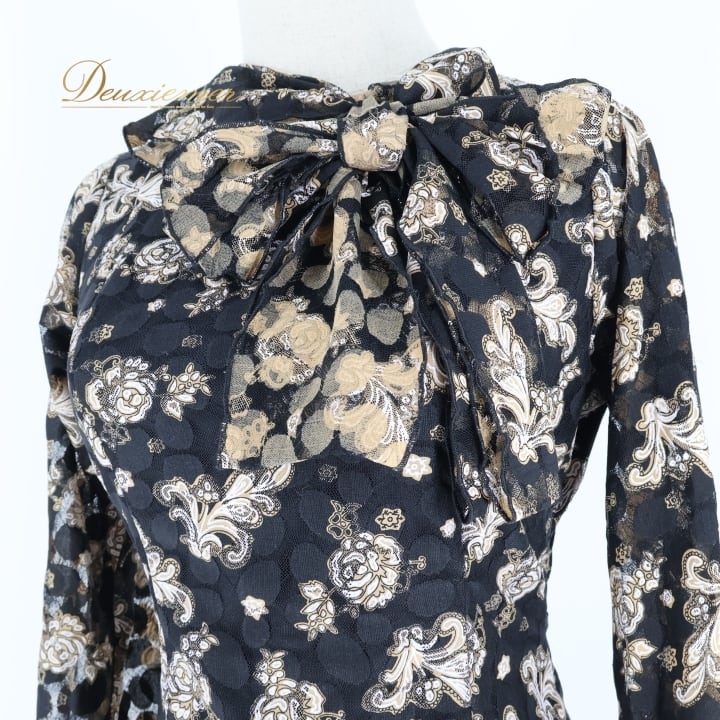 ▽軽い生地感のトップスで首元のリボンでアレンジ可
