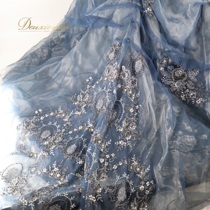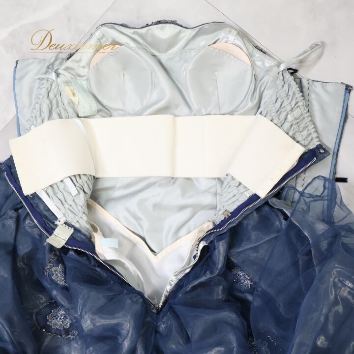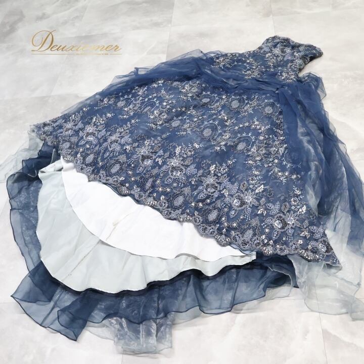 カラードレス ウエディングドレス 披露宴 結婚式 前撮り palma rosa パルマローザ 撮影 紺 レース 演奏会 発表会 上品 ビーズ 高級感 編み上げ ネイビー系 豪華 おしゃれ フォーマル ドレスアップ ステージ衣装 結婚式 パーティー 大人可愛いエレガント