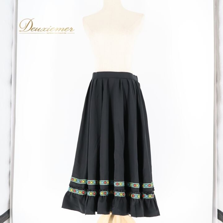 フォークダンス 衣装 スカート ブラック系 刺繍 花 黒 緑 青 赤 黄 チロリアン チロルスカート カントリー ボリューム ダンス衣装 イベント かわいい グリーン系 ブルー系 レッド系 イエロー系