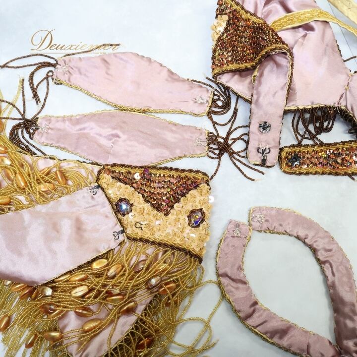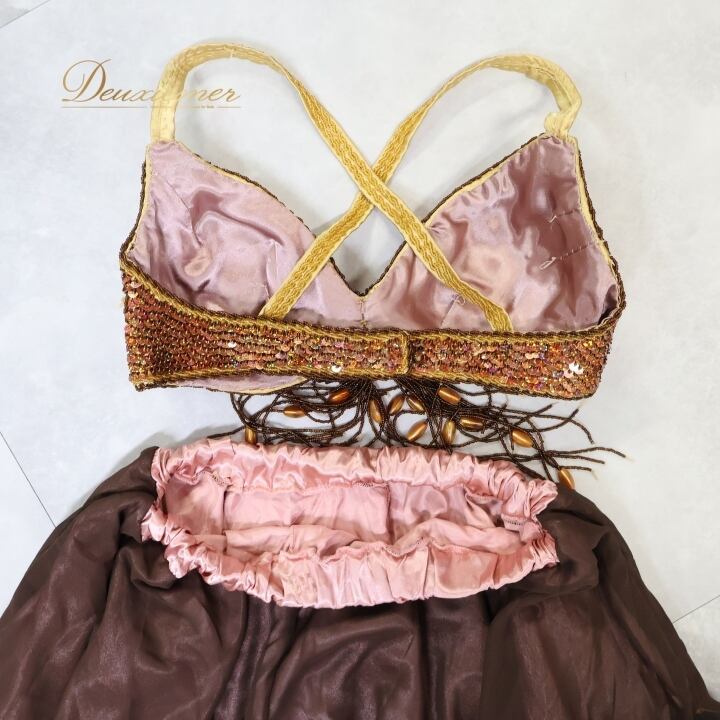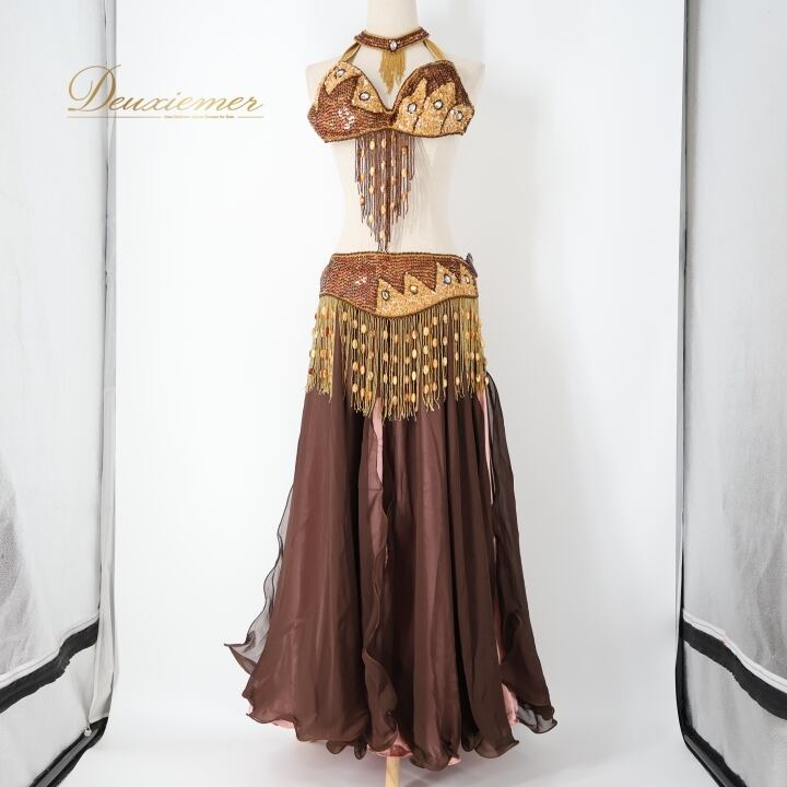 #ベリーダンス #オリエンタル衣装 #ダンス衣装 #パフォーマンス #コスチューム #ラインストーン #ビーズ装飾 #スカート #ウエストゴム #チョーカー #ベール #アーム飾り #ブラウン #ピンク #ゴールド #エレガント #ダンス #ファッション #トルソー #ENUTSU