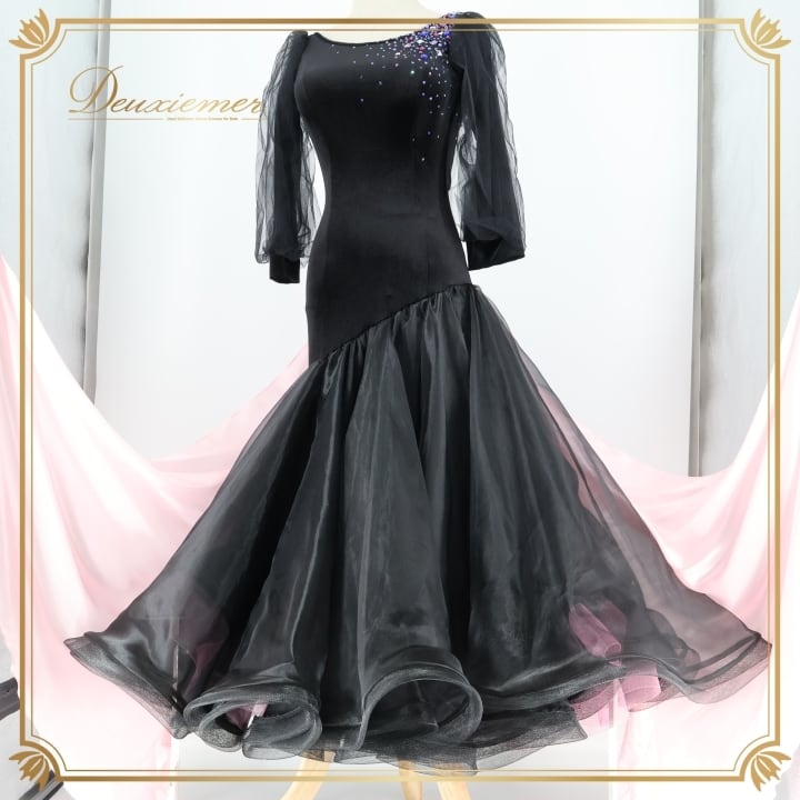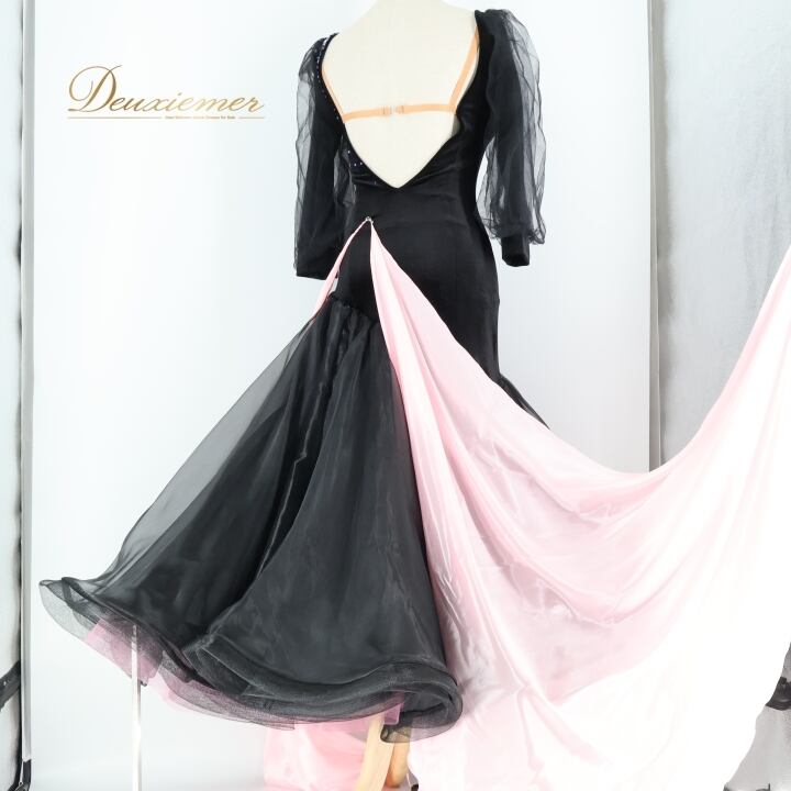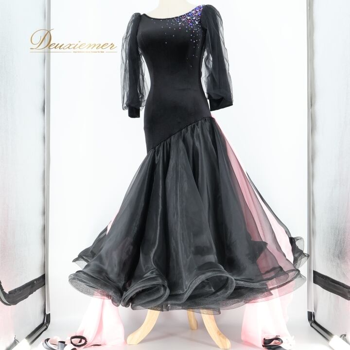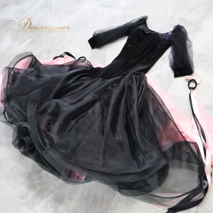 #社交ダンス #ダンス衣装 #ワンピース #ドレス #ファッション #黒ピンク #華やか #スカート #レオタード #パーティードレス #ダンスドレス #ボリュームスカート #トルソー #伸縮性 #胸パッド #フロート #可愛い #ダンススタイル #ドレスアップ #ENUTSU