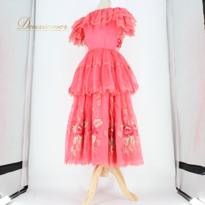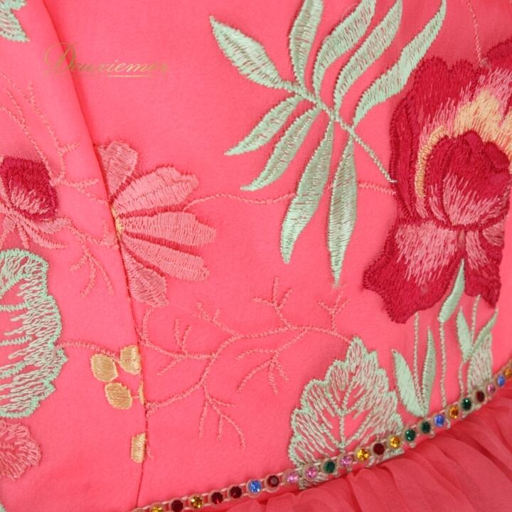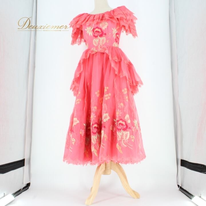 #社交ダンス #ダンス衣装 #ドレス #ピンク #花柄 #刺繍 #フェミニン #ボリューム感 #肩パッド無し #胸パッド無し #ファスナー仕様 #コンペティション #クラス #ダンススタイル #女性用トルソー #ダンスファッション #パフォーマンス #特別な日 #社交ダンス衣装 #ENUTSU