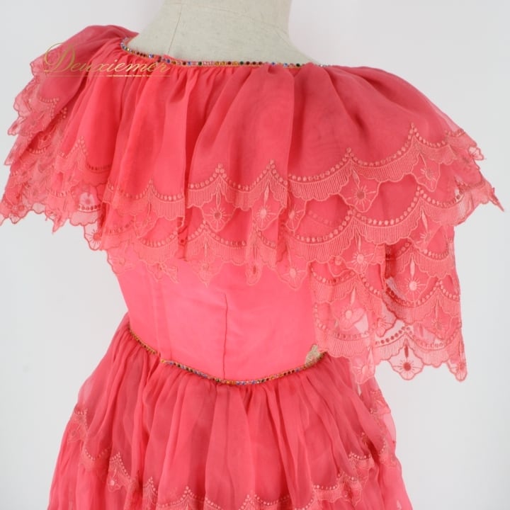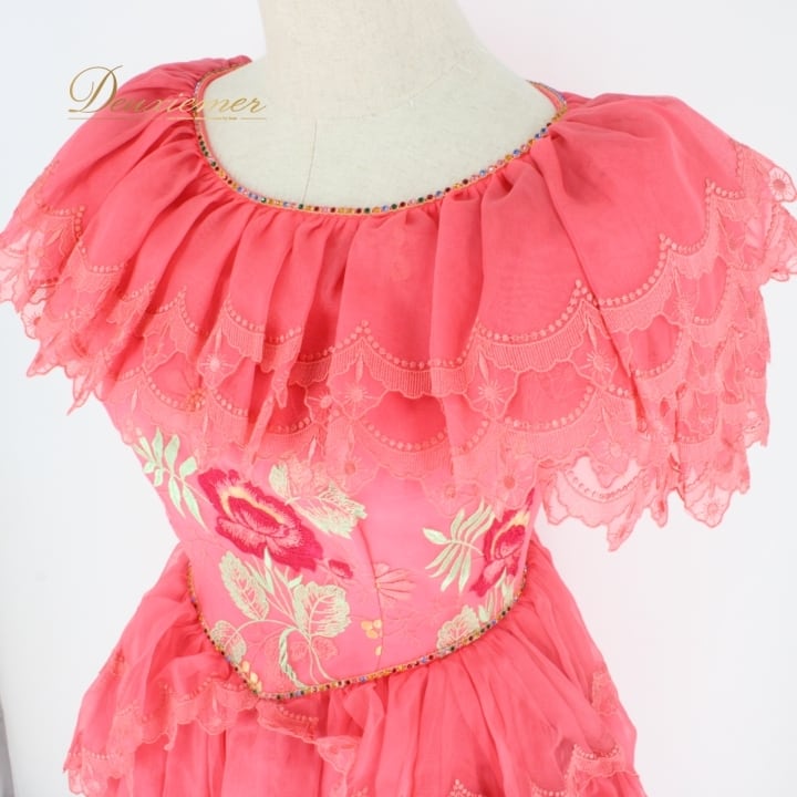 社交ダンス 衣装 スタンダード ステージ衣装 ドレス ワンピース パーティドレス TSUJITANI ピンク系 花柄 派手 レース フリル 刺繍 フェミニン 二重スカート ボリューム感 ダンス衣装 社交ダンスドレス ステージ衣装 パーティー衣装 おしゃれ レディース かわいい 人気 コスチューム 特別な日 発表会 花モチーフ エレガント ストレッチなし ファスナー付き ヘルシー ティーンズ おすすめ