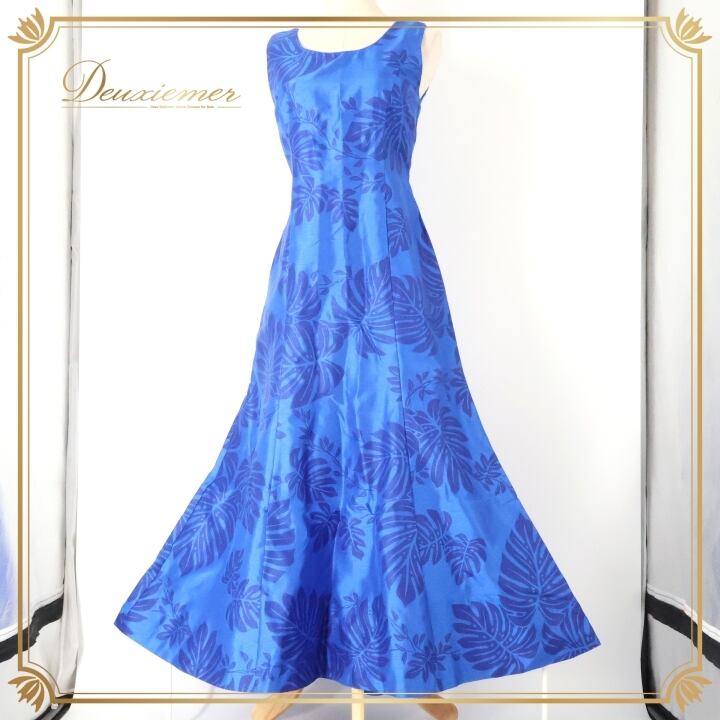#フラダンス #ハワイアンファッション #フラダンス衣装 #ワンピース #ドレス #モンステラ柄 #ブルー #ネイビー #日本製 #MENEHUNE #衣装 #女性用 #サイズ4 #ポリエステル #おしゃれ #ダンス衣装 #特別な日 #コンサート #パーティー #ENUTSU