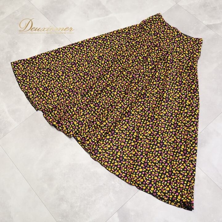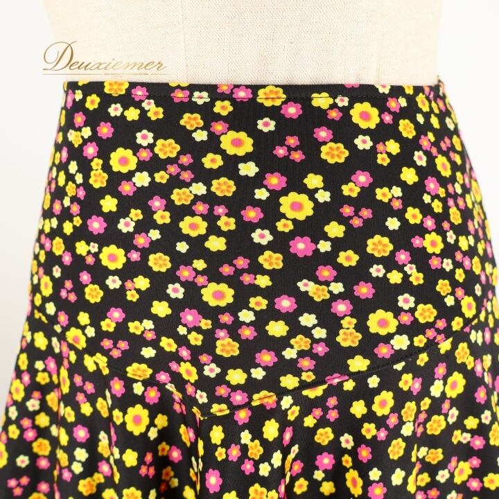 フラメンコ 衣装 ファルダ スカート シージョ セット ブラック系 花柄 小花柄 カラフル 黒 黄 紫 日本製 かわいい 華やか ダンス衣装 イベント 練習 レッスン ピキージョ ステージ イエロー系 パープル系