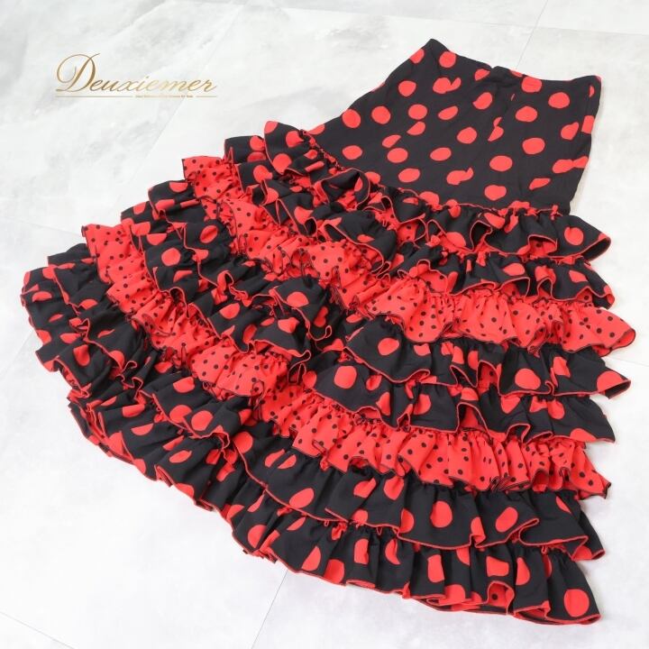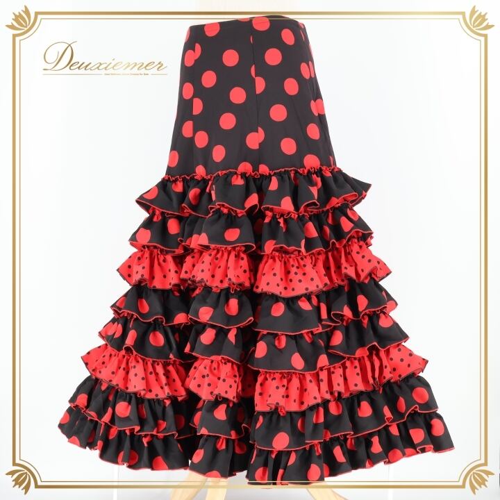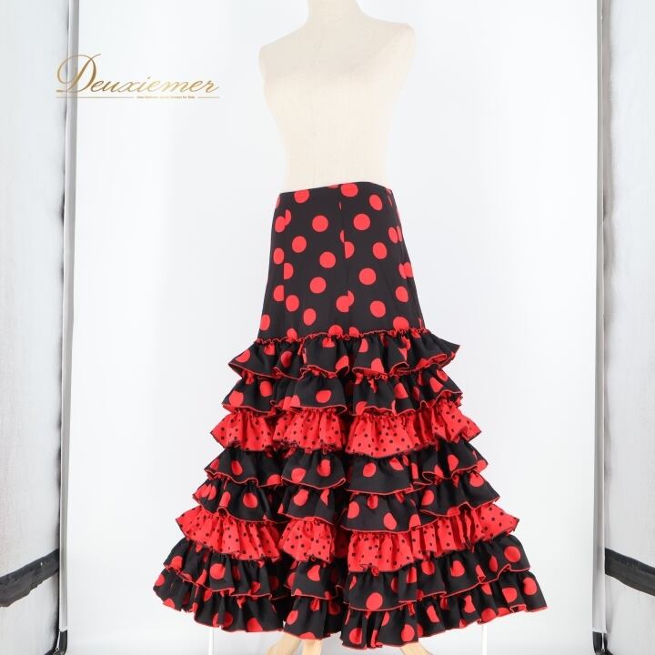 #フラメンコ #衣装 #スカート #ファルダ #スペイン製 #黒赤 #ポップ #段々フリル #カラフル #ダンス衣装 #フラメンコダンス #女性用 #トルソー #おしゃれ #ファッション #舞台衣装 #フィット感 #スタイリング #コスプレ #ENUTSU
