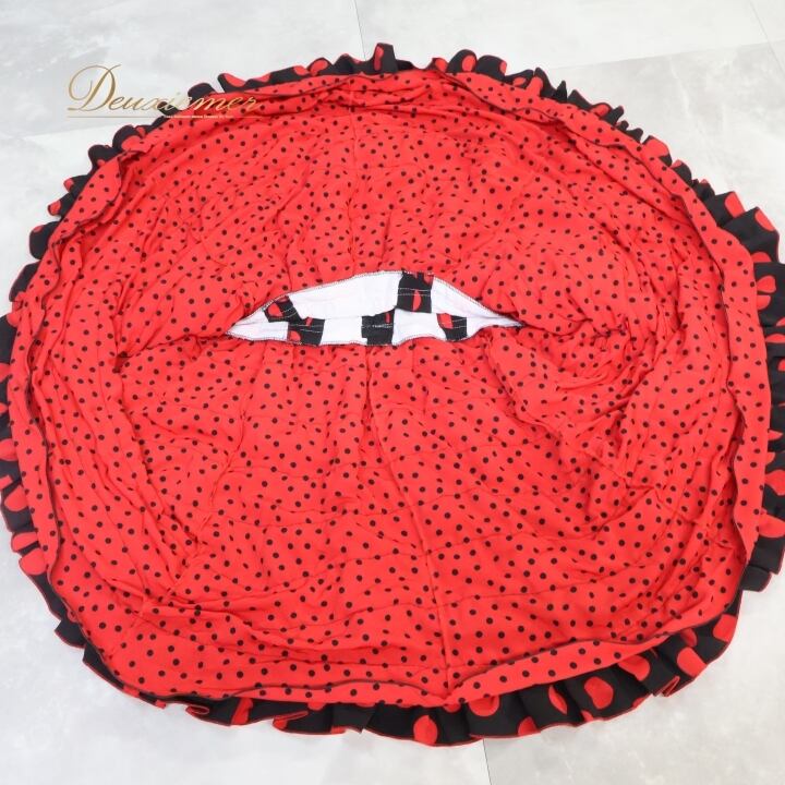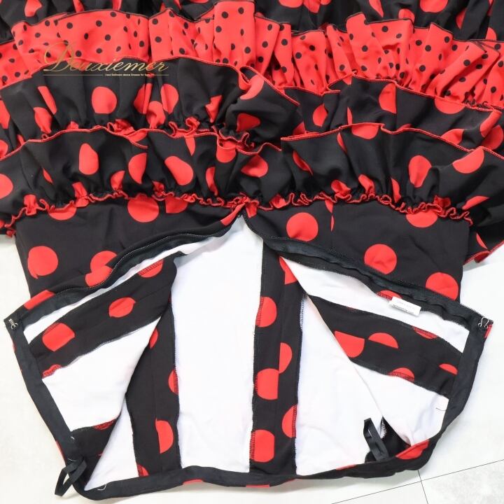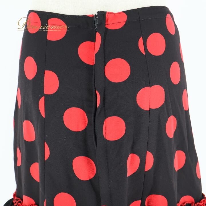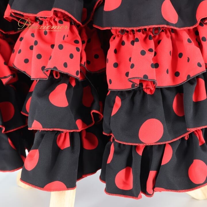 フラメンコ 衣装 ファルダ スカート 黒 赤 ボランテ フリル 水玉 ドット ダンス パーティ 発表会 大きめ スペイン製 ブラック系 レッド系 フリルスカート スペイン ダンス衣装 派手カラー 発表会用 ポップデザイン 高級感 かわいいスタイル 衣装セット ロングスカート