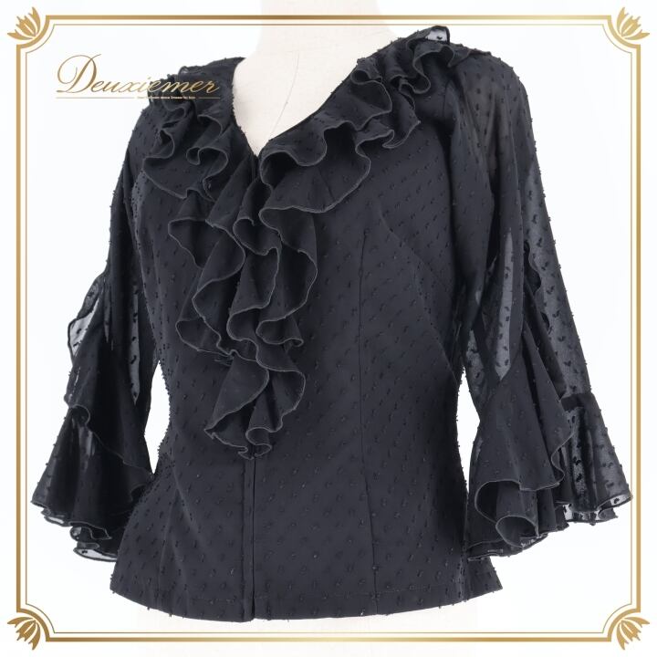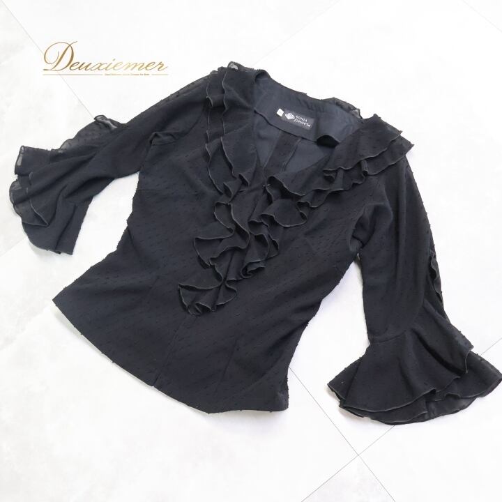 フラメンコ 衣装 ソニアジョーンズ SONIA JOHNES トップス ブラウス 黒 レース ダンス 発表会 フリル 軽い パーティ ブラック系 フラメンコ トップス レース ブラウス 軽量 おしゃれ シンプル 透け感 黒系 ダンス衣装 発表会用 レディース コンサート