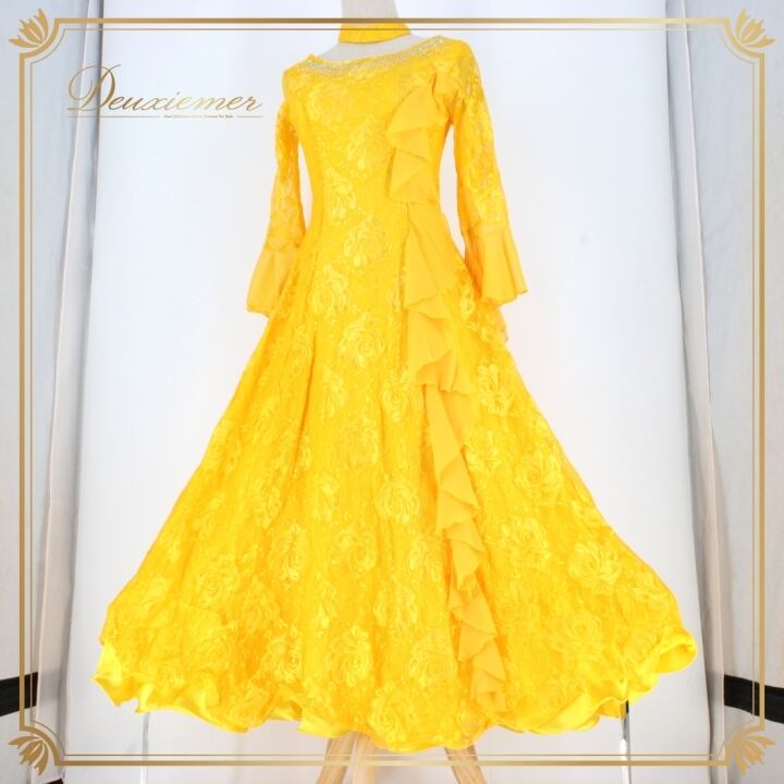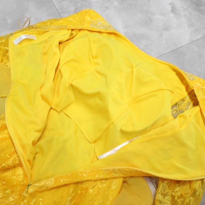 #社交ダンス #ダンス衣装 #ドレス #イエロー #花柄 #レース #ラインストーン #ファッション #プリマブティック #ダンススタイル #衣装 #舞台衣装 #トルソー #コスチューム #ストレッチ #シンプル #エレガント #美しい #ダンスパフォーマンス #ENUTSU