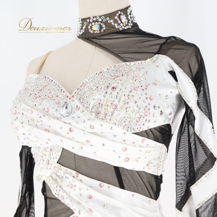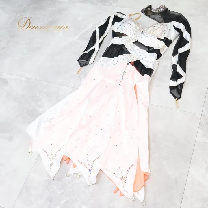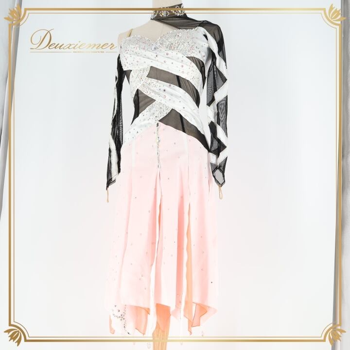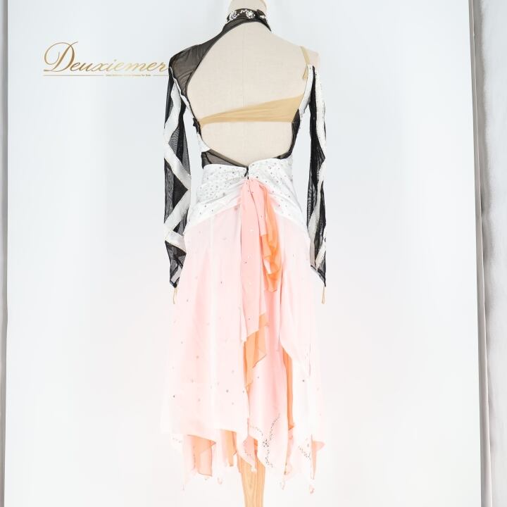 社交ダンス 衣装 ラテン ドレス ワンピース 白 ピンク Scarlet スカーレット ホワイト系 ピンク系 ブラック系 パーティ 発表会 サーモン ダンスウェア 軽量 フォーマル 可愛い おしゃれ レディース 踊りやすい コスチューム ステージ