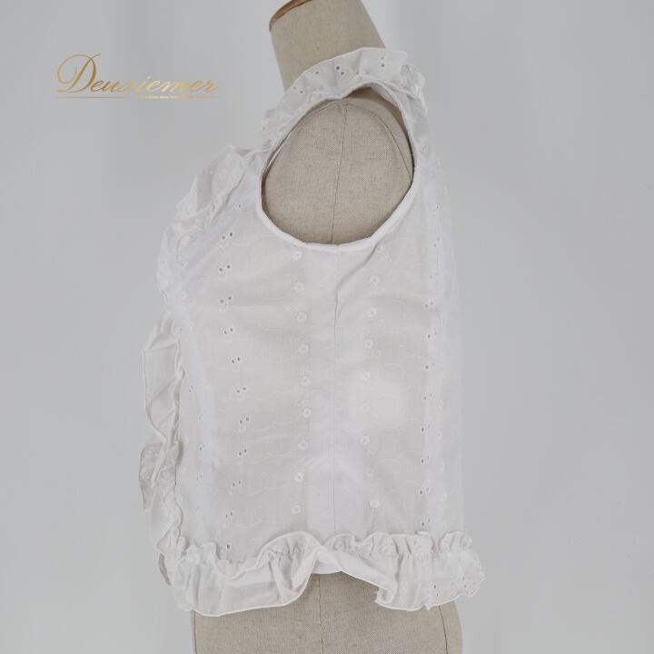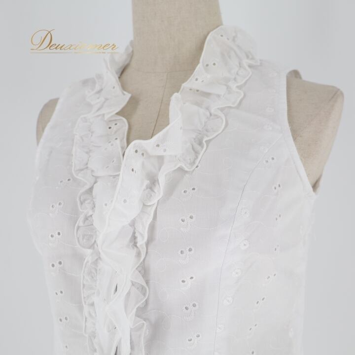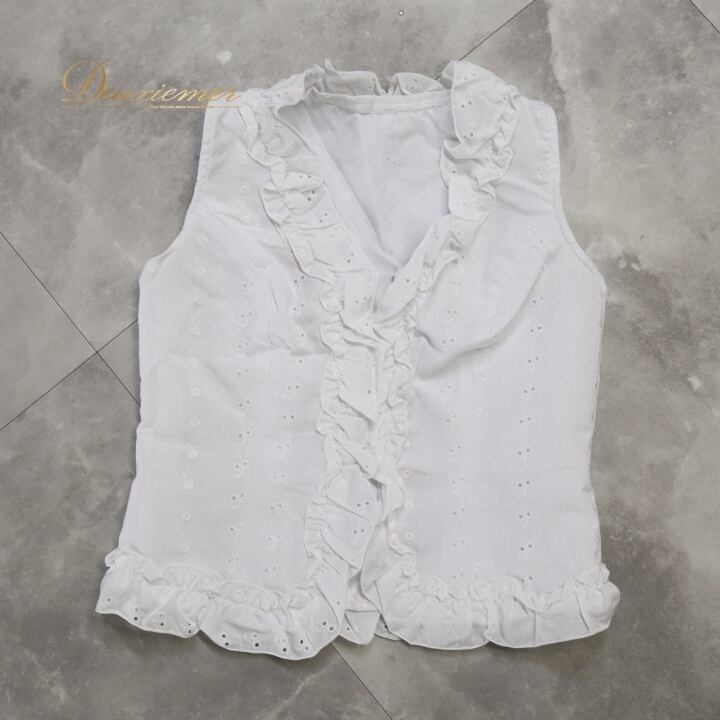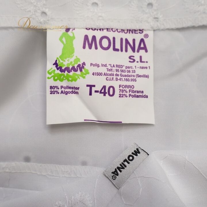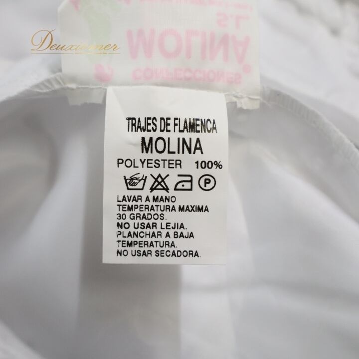 フラメンコ 衣装 トップス ブラウス ホワイト系 モリーナ MOLINA 白 刺繍 ノースリーブ 袖なし フリル ボランテ かわいい オールホワイト 爽やか ダンス衣装 練習 レッスン イベント ステージ