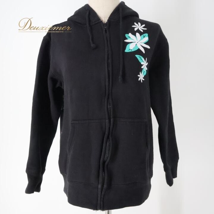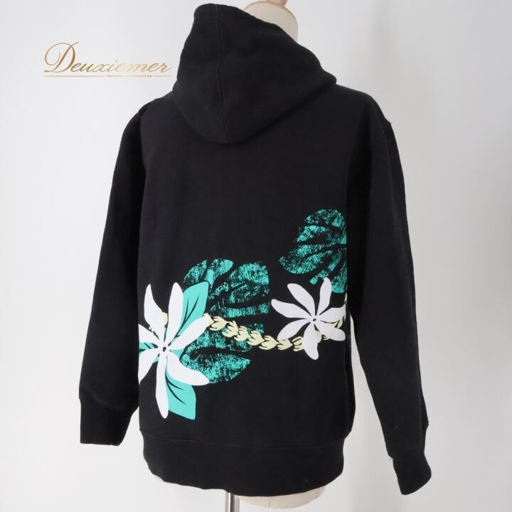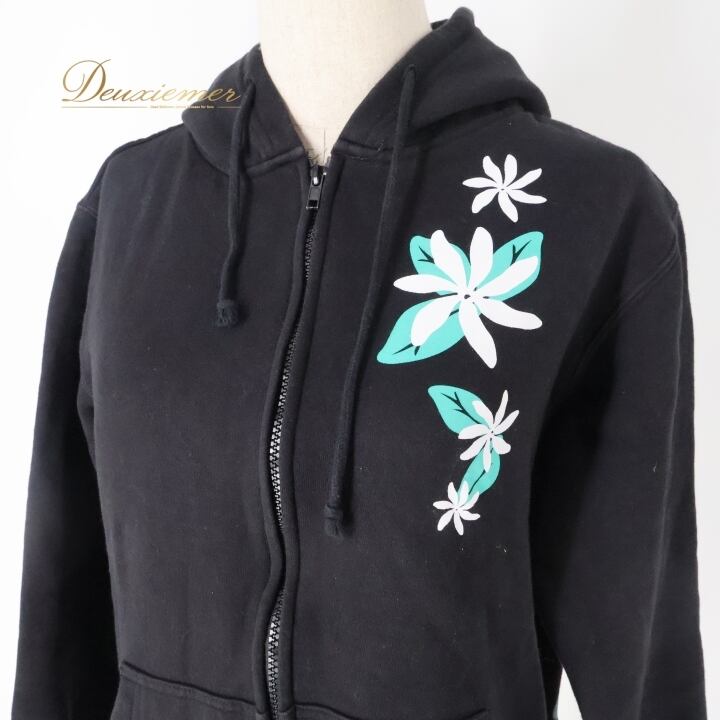フラダンス 衣装 パーカー ジップパーカー マウナロア ブラック系 Maunaloa 裏起毛 ワンポイント ティアレ柄 ワンポイント シンプル かわいい 黒 白 緑 ハワイアン アロハ ハワイアンプリント フラ ダンス レッスン 練習 カジュアルファッション