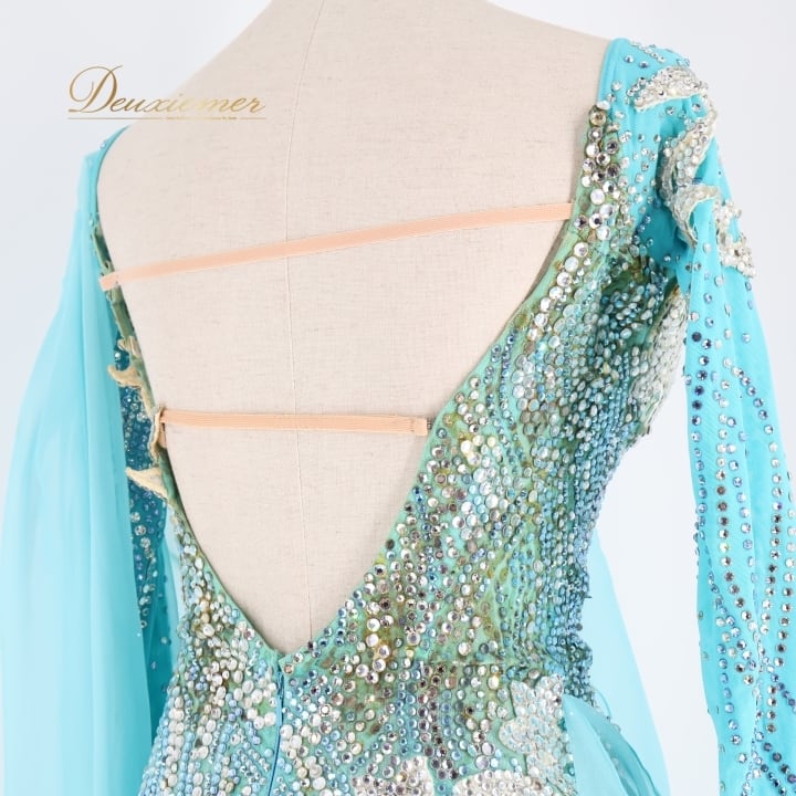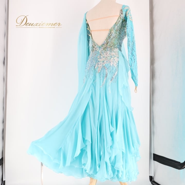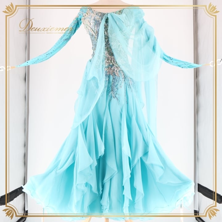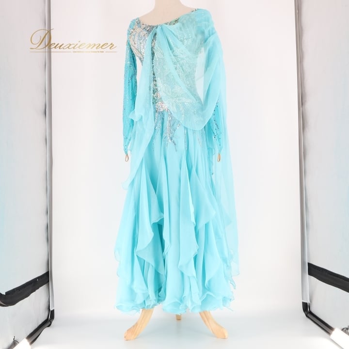 #社交ダンス #ダンス衣装 #ワンピース #ドレス #クリスアン #水色 #ファスナー #レオタード #伸縮性 #胸パッド #ダンスパフォーマンス #ダンススタイル #おしゃれ #ステージ衣装 #スカート #落ち感 #女性用トルソー #踊る楽しさ #ダンス好き #ENUTSU