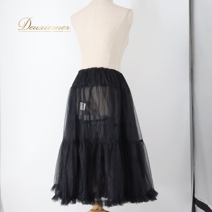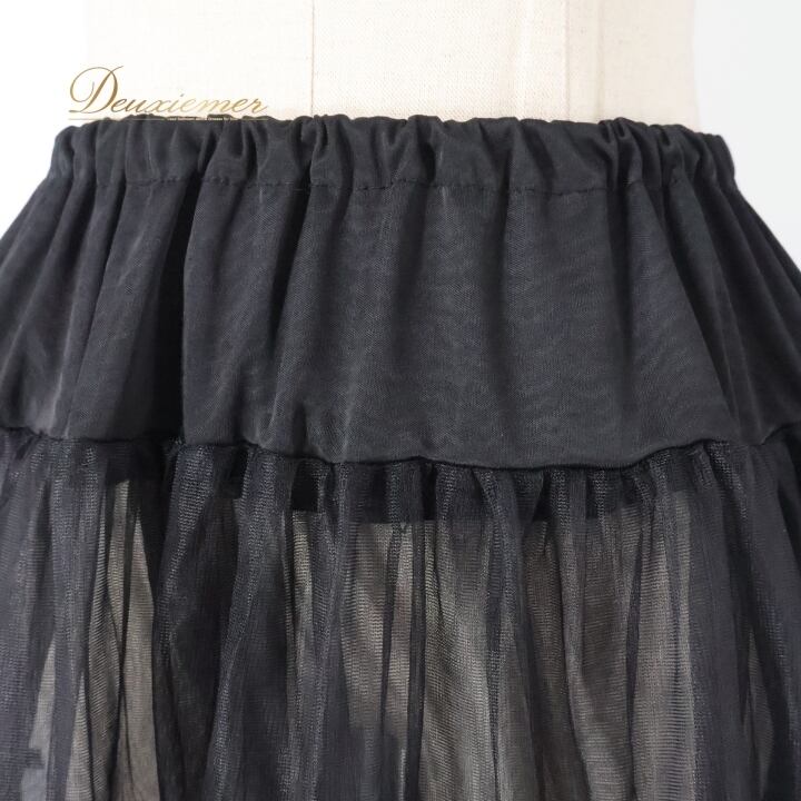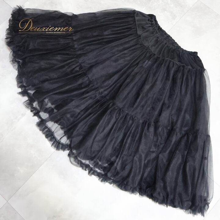 フラダンス 衣装 ペチコート パニエ チュール エミカ ブラック系 Emika かわいい フリル ボリューム ふんわり ふわふわ 黒 シンプル ハワイアン アロハ フラ ダンス レッスン 練習 おしゃれ ブラックチュール ボリュームスカート パニエスカート