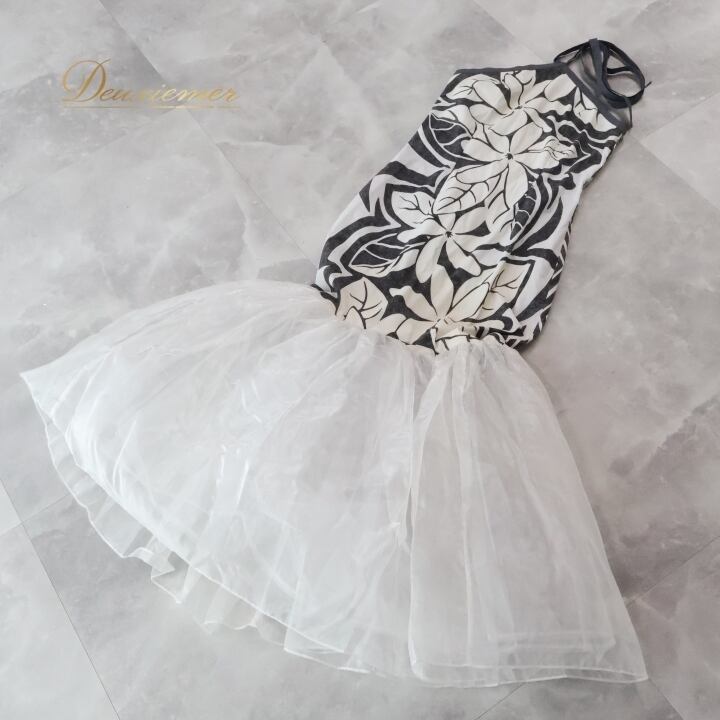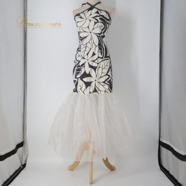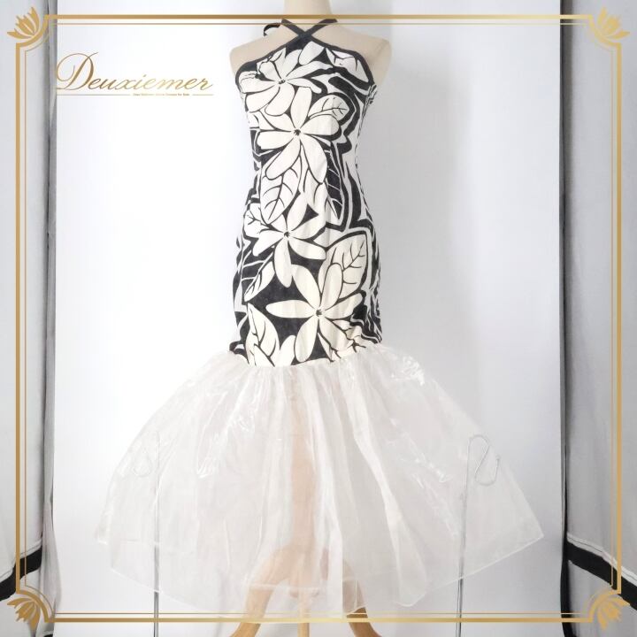#フラダンス #衣装 #ワンピース #ドレス #日本製 #オーガンジー #高級感 #ブラック #グレー #ホワイト #ポリエステル #綿 #ファスナー #ハレクアイレア #フラダンス衣装 #コスチューム #サイズS #女性用トルソー #トルソー撮影 #ENUTSU