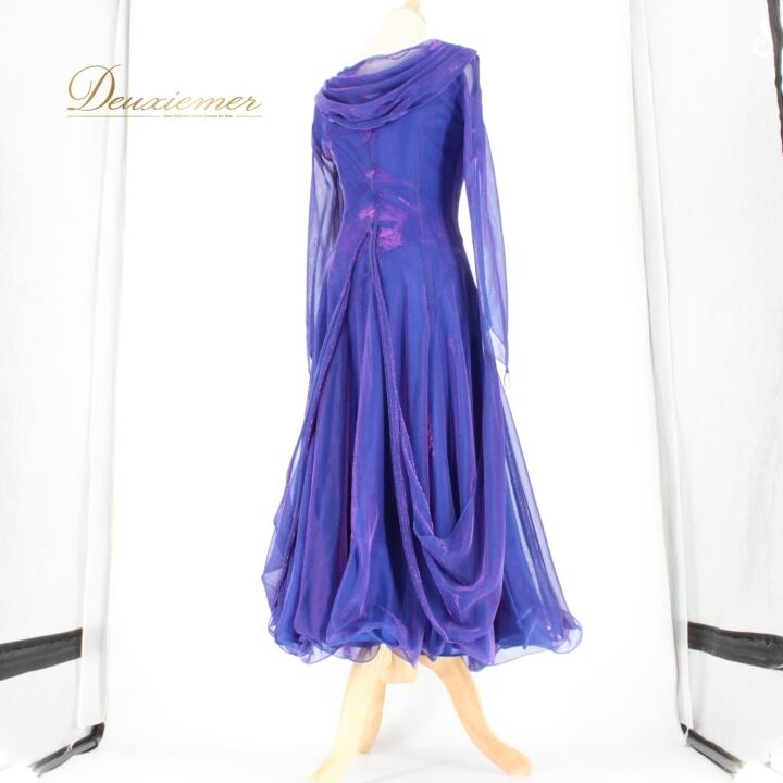 社交ダンス 衣装 スタンダード ドレス ワンピース パーティドレス prima boutique プリマブティック パープル系 長袖 レース ブルー系 青 フロート デザイン 二重スカート ボリューム 優雅 動き 軽やか 舞う 伸縮性 ポリエステル ポリウレタン